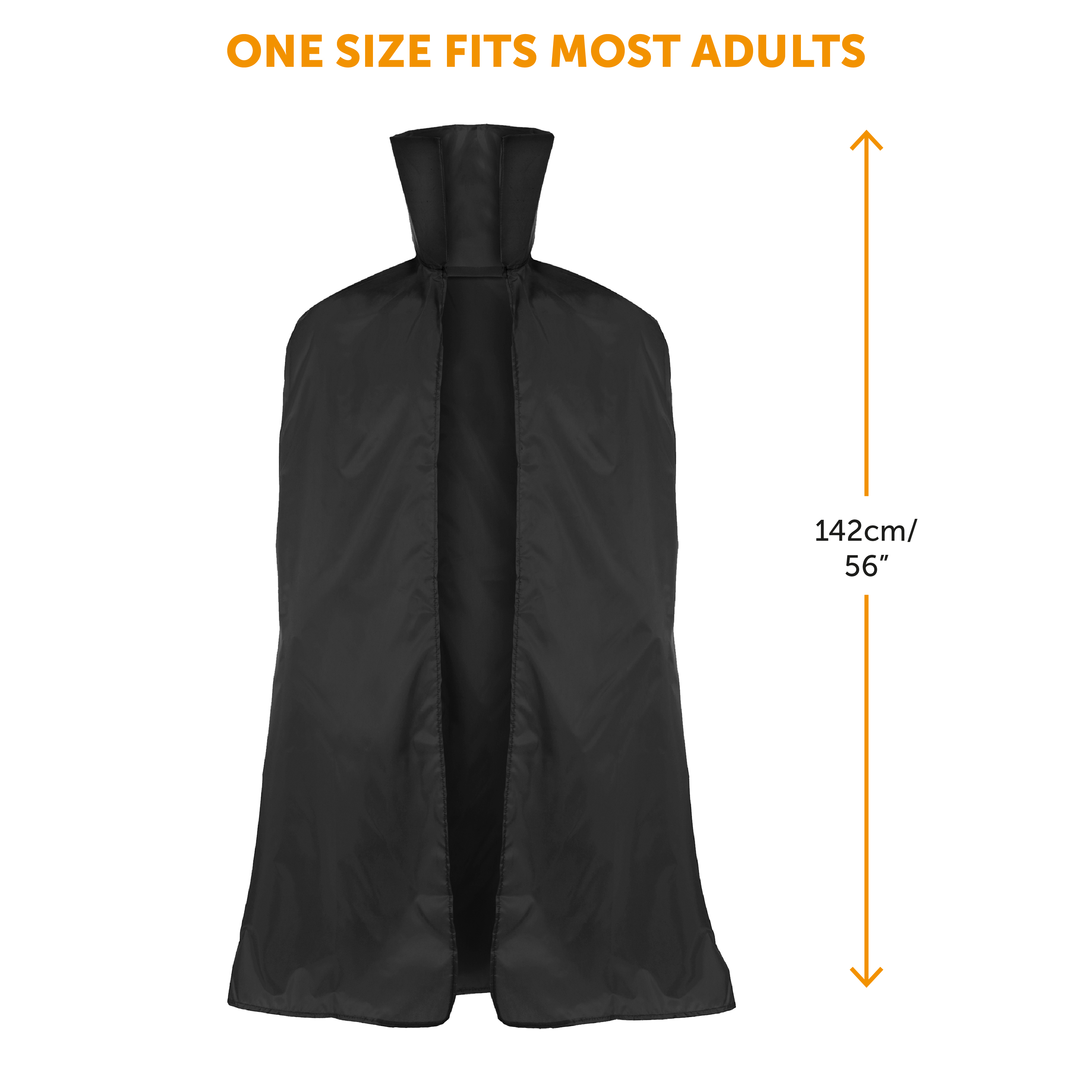 ONE SIZE FITS ALL ADULTS: Regardless of your height or size, our Adults Black Collared Vampire Cape is a 56” (142cm) Long Vampire Cape, being a suitable and perfect size for any Adult to wear comfortably throughout the night and day for your fancy dress events!