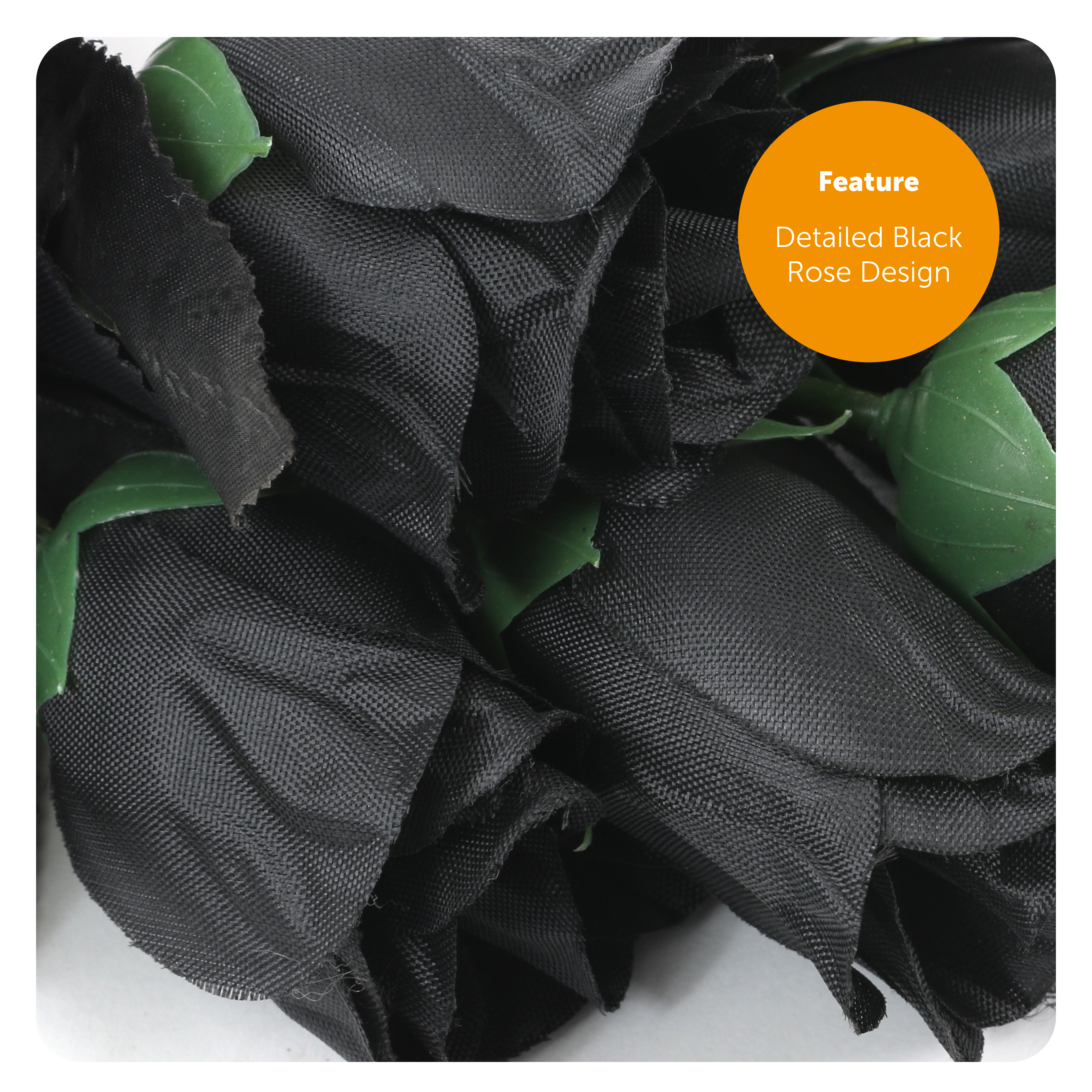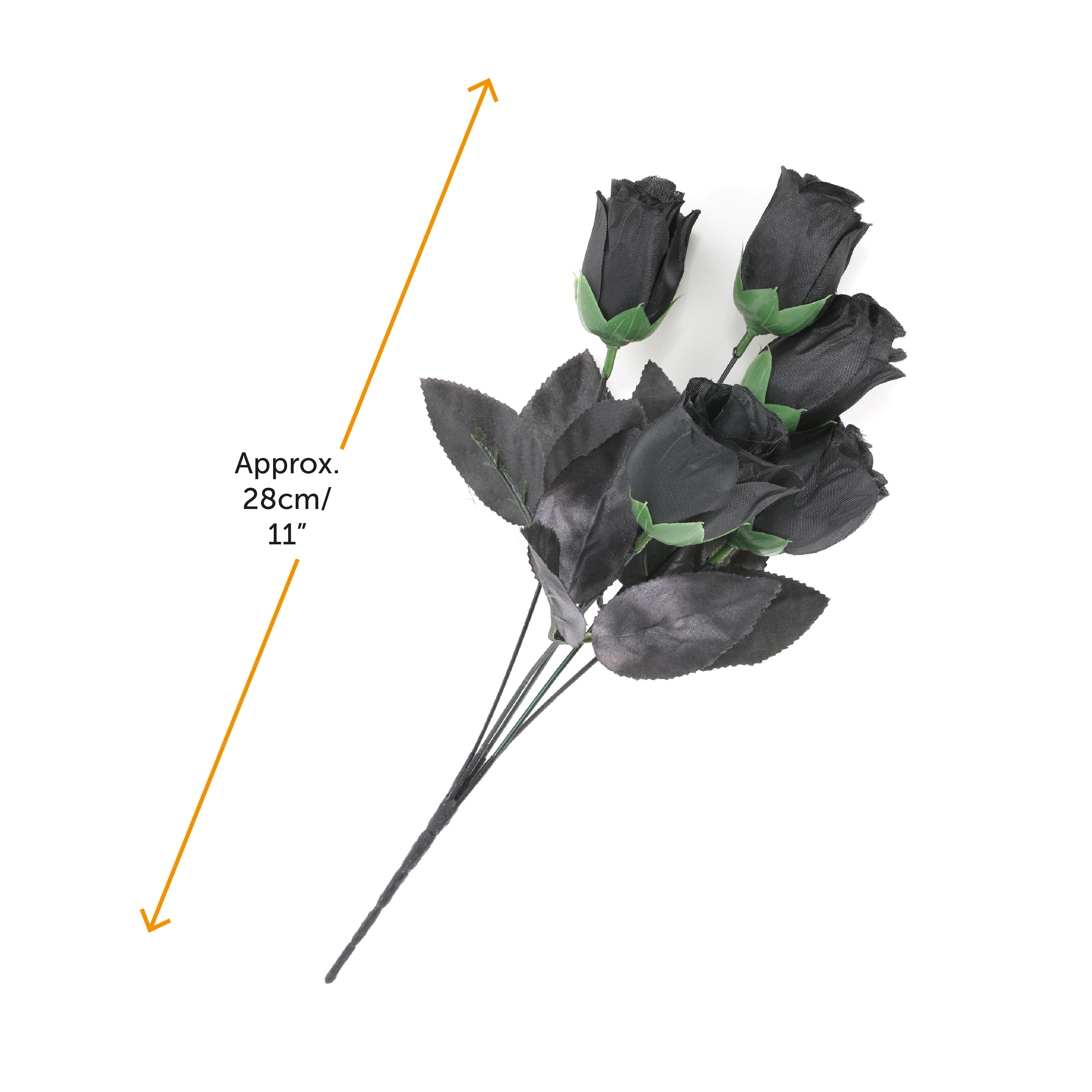 BOUQUET SIZE: Your Black Rose Bouquet is a small, delicate looking prop, measuring an approximate length of 28cm (11”), the perfect sized, lightweight prop to finish off your look!