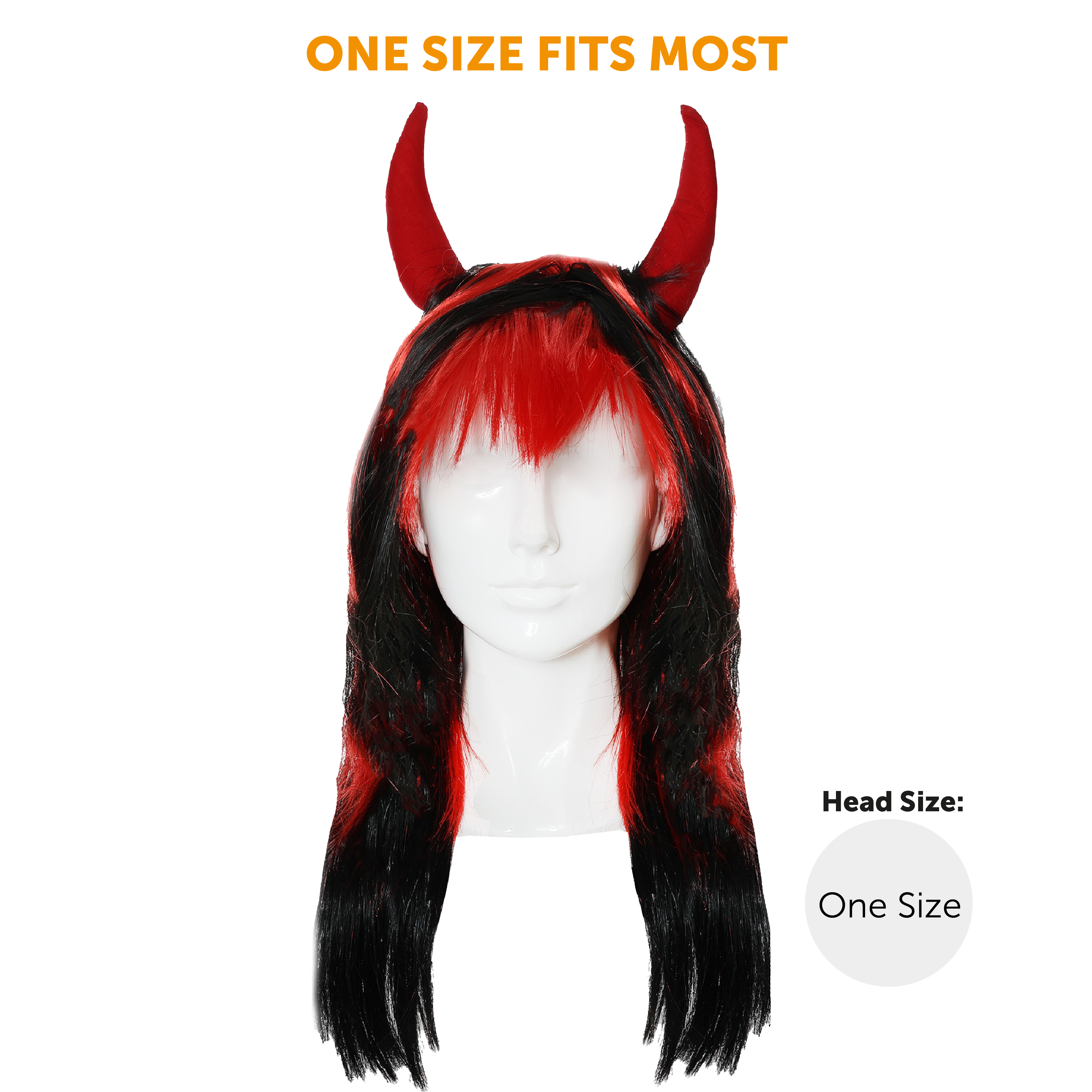 ONE SIZE FITS MOST: The Ladies Devil Horn Wig is one size making it suitable for most Adults to wear comfortably throughout the day and night with any Costume!