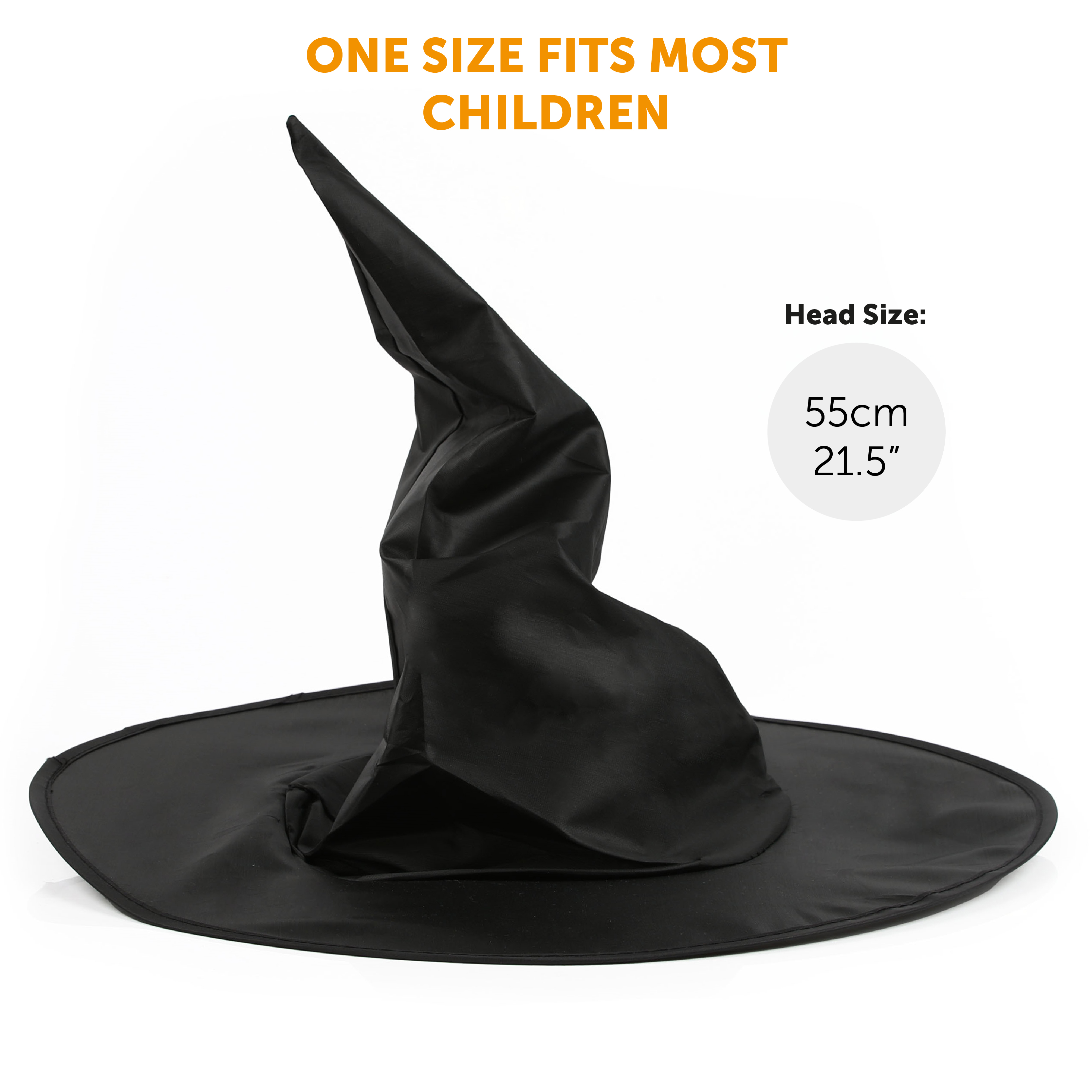 ONE SIZE FITS MOST: Your Witch Accessory Set includes a Basic Witch Hat which fits most Children comfortably with a head size up to 55cm (21.5")