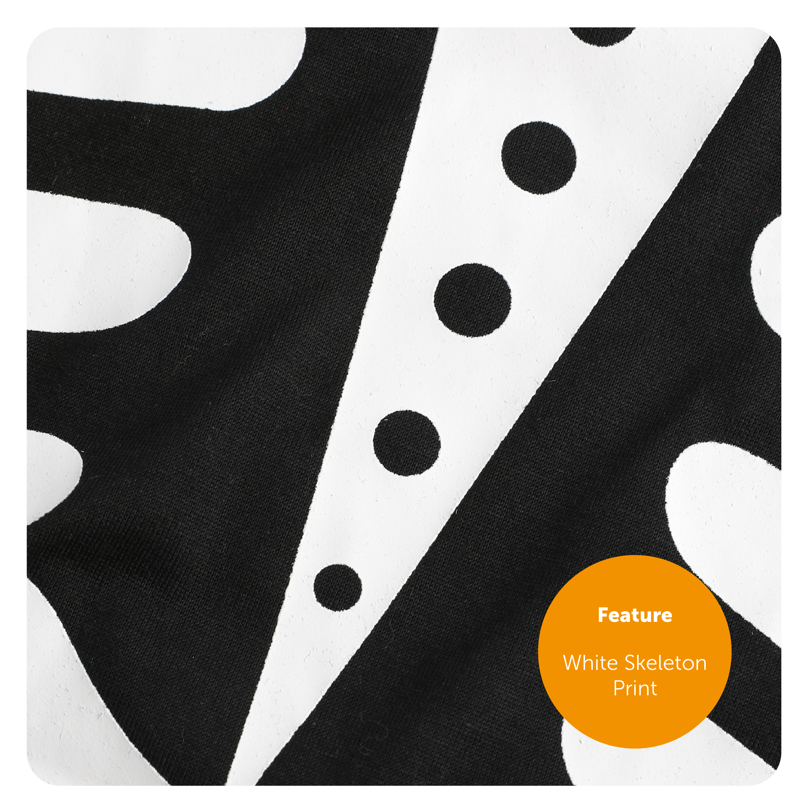 COSTUME DETAILS: Your Ladies Skeleton Costume includes a Black Vest with White Skeleton print on the front, a layered Black Tutu with Glitter detail, and Black Tights with Skeleton Print on the front, a great look for any Halloween event!