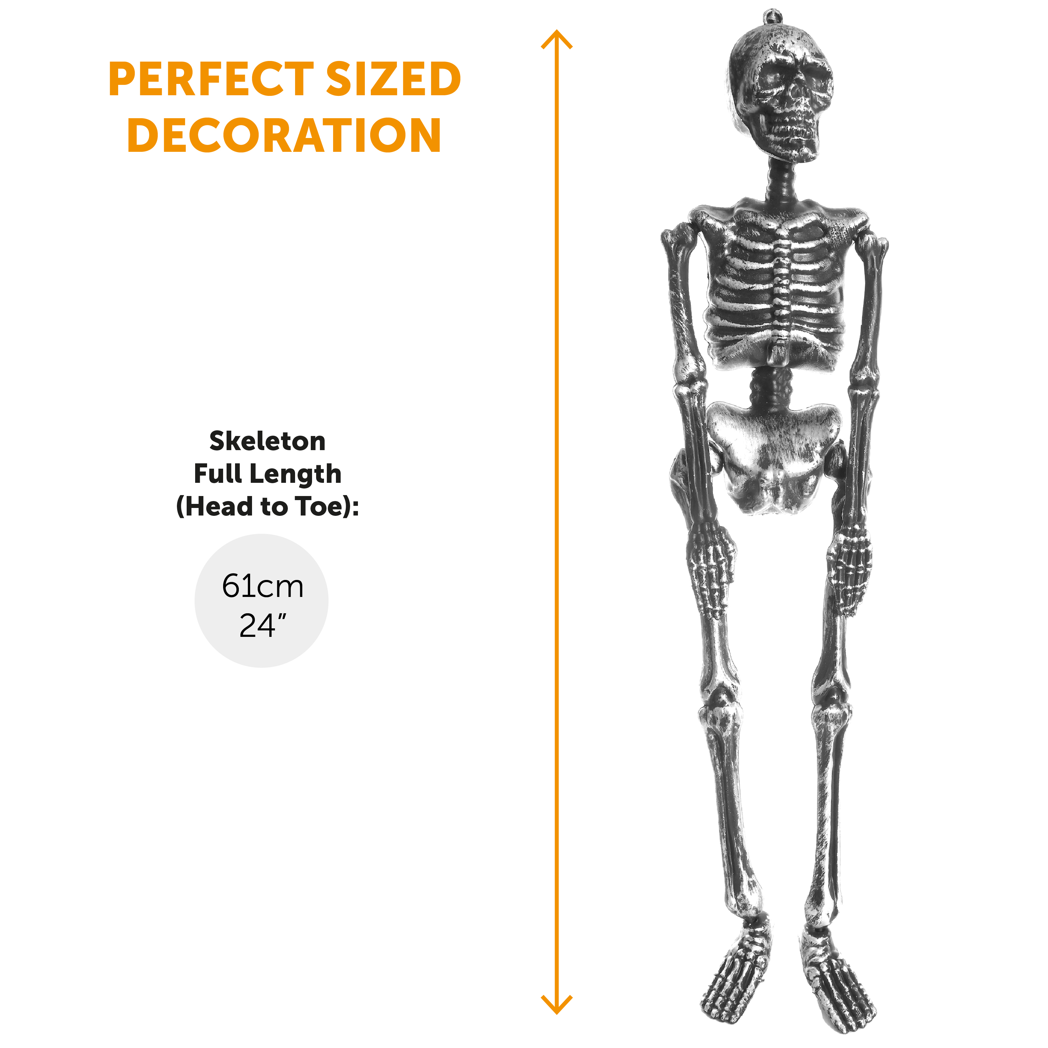 GREAT SIZE: The Silver Hanging Skeleton is a great sized Halloween Prop measuring 61cm (24") from head to toe, the perfect decoration to hang anywhere at your Halloween party or to simply get in the spooky spirit at home!
