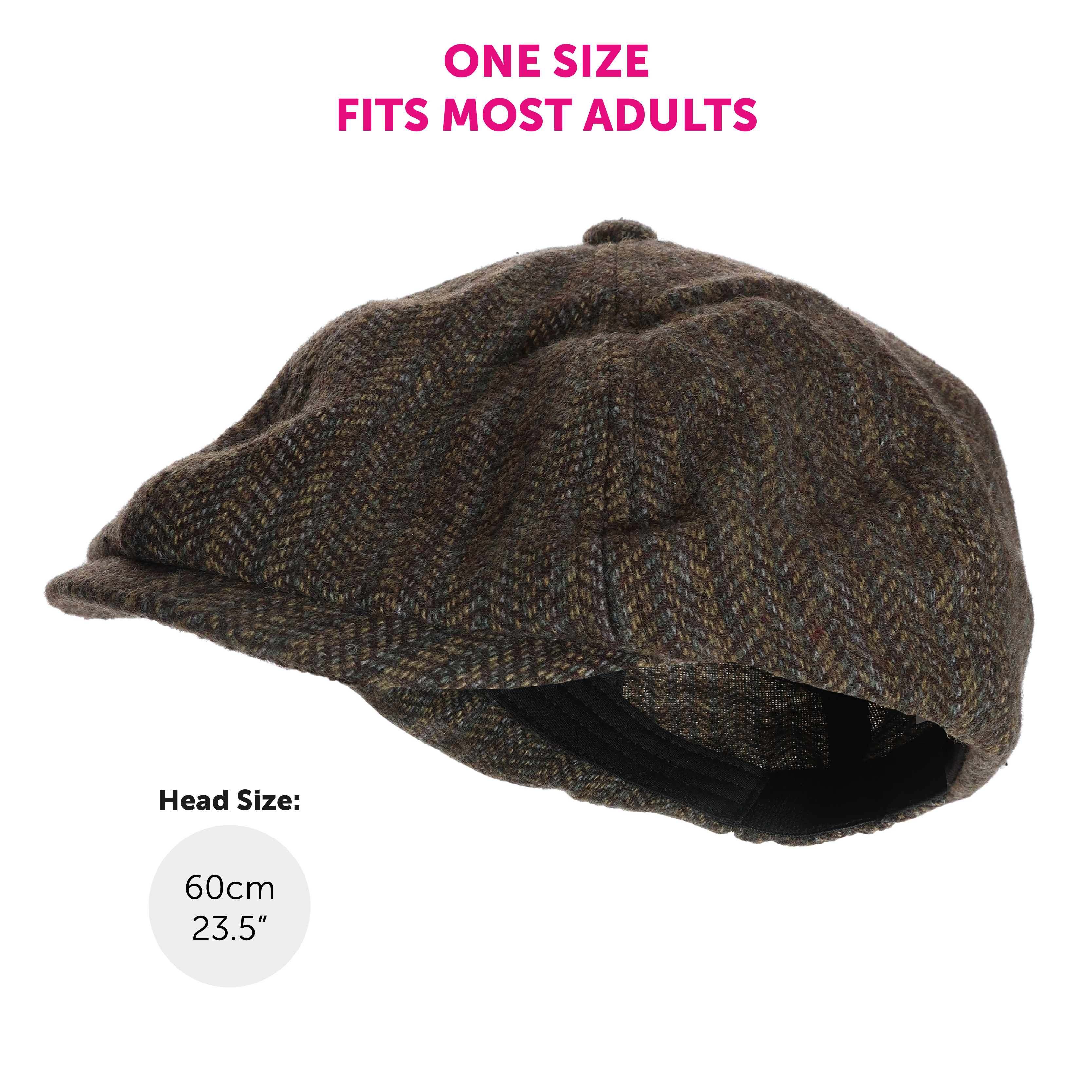 ONE SIZE FITS MOST: Being a very comfortable one size, this Brown Flat Cap Hat is suitable for most Adults with a Head Size measuring up to 60cm (23.5"), making it perfect for all fancy dress events!