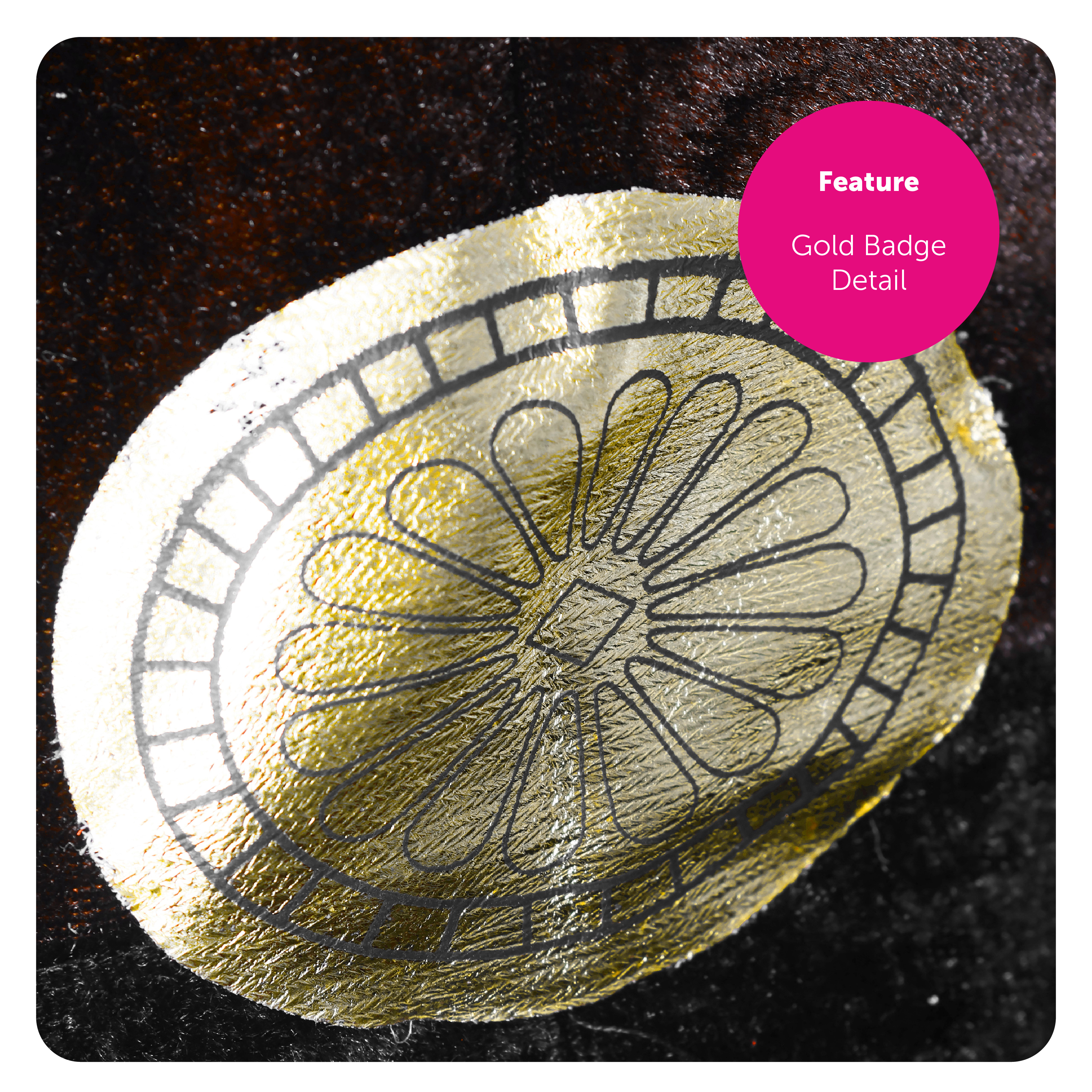 HAT DETAILS: Your 80's Rock Guitarist Hat is a large Brown Velour Hat with Gold pattern Badges on each side and long Black Wavy Hair attached, the perfect addition to your music icon outfit!