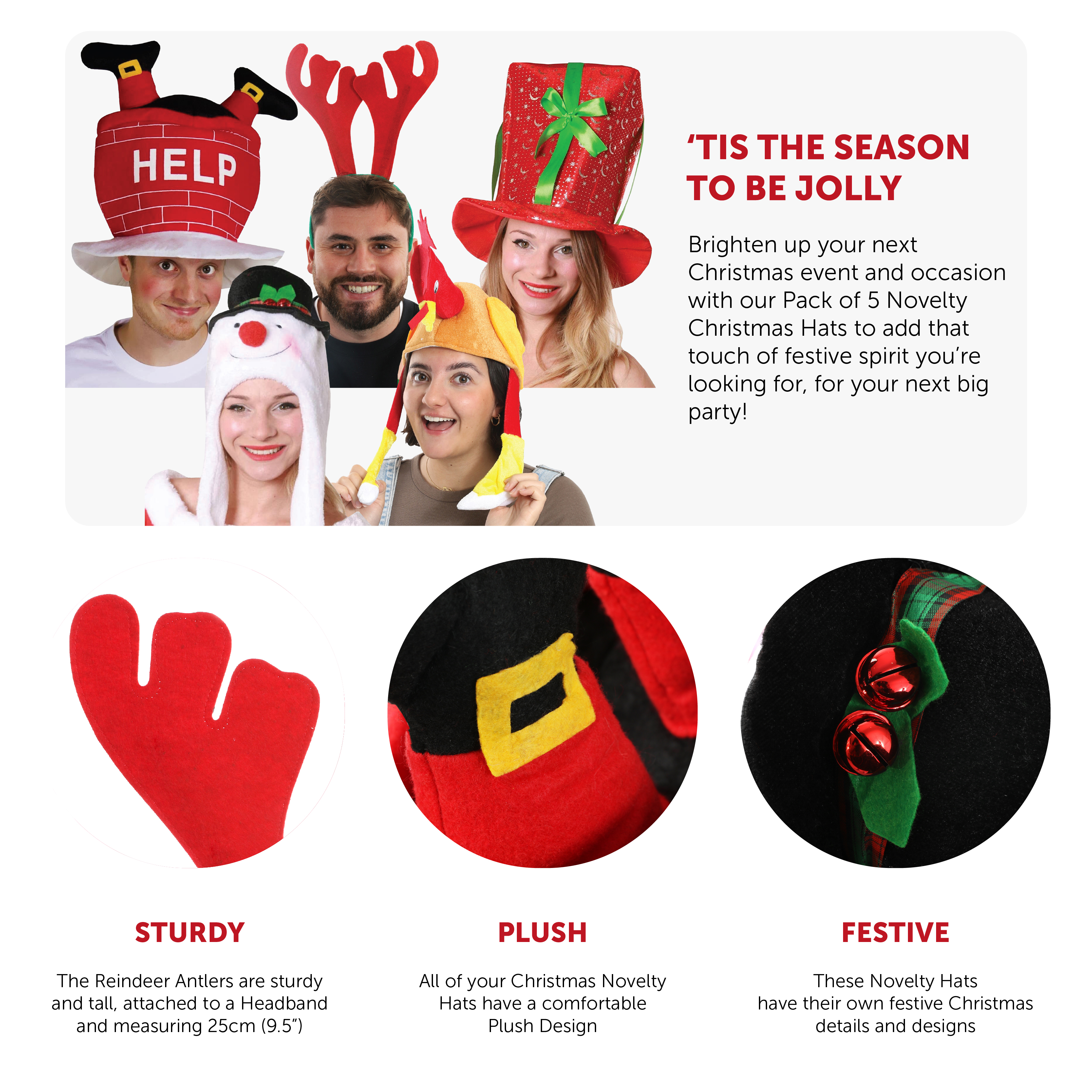5 PACK NOVELTY CHRISTMAS HAT SET: Brighten up your next Christmas event and occasion with our Pack of 5 Novelty Christmas Hats to add that touch of festive spirit you’re looking for, for your next big party!