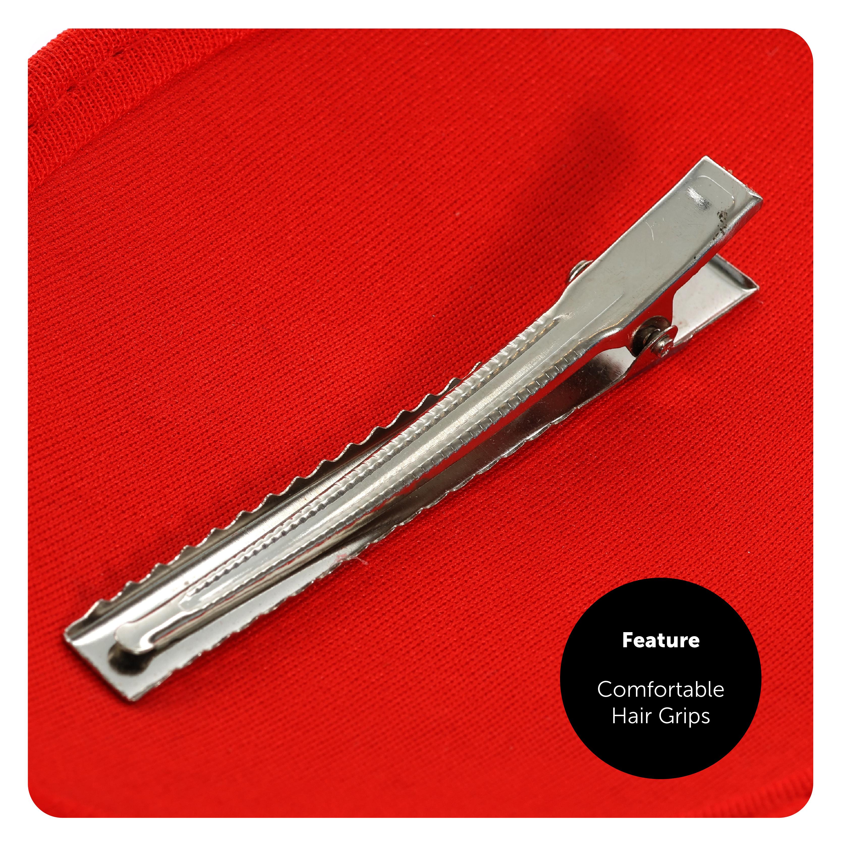 ONE SIZE FITS ALL: The Mini Red Fascinator Headpiece has hair grips underneath, allowing anyone to wear comfortably! The Mini Headpiece measures a length of 15cm (6") and a width of 18cm (7")