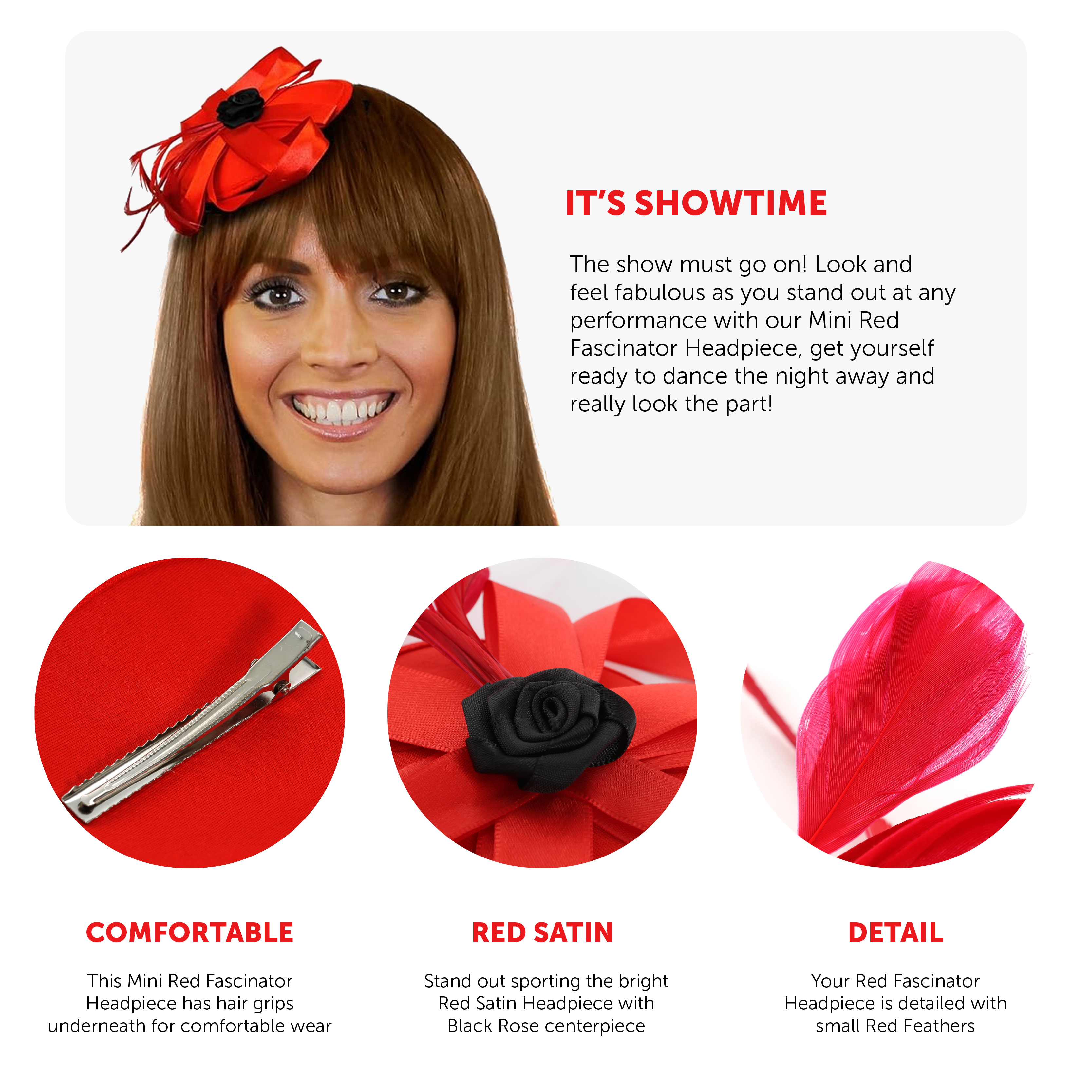 MINI RED FASCINATOR HEADPIECE: The show must go on! Look and feel fabulous as you stand out at any performance with our Mini Red Fascinator Headpiece, get yourself ready to dance the night away and really look the part!