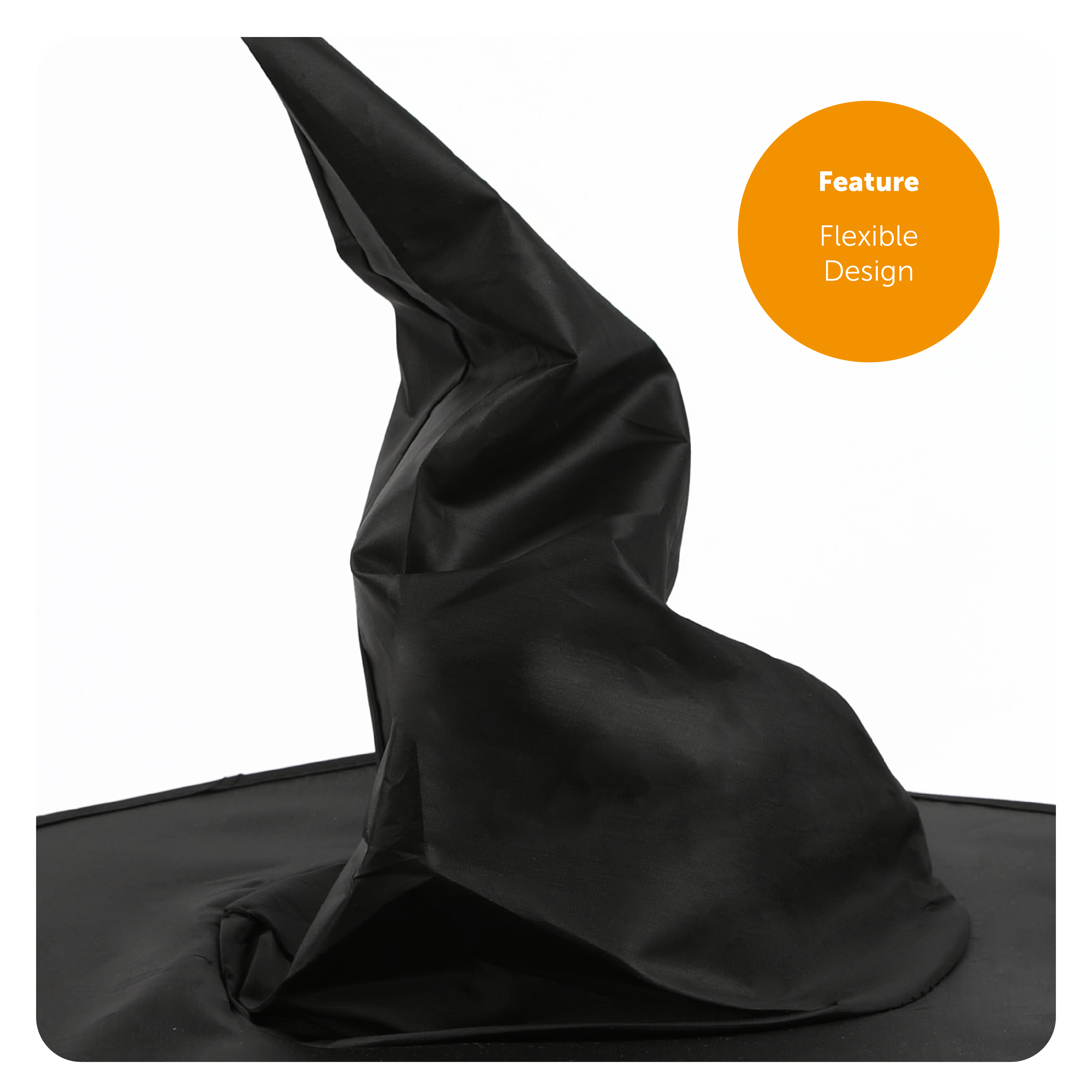 WITCHES HAT DETAILS: Your Black Witches Hat has a simple yet classic design, being a tall black pointy Witches Hat with a wide brim, this basic Witches Hat is the perfect choice for any and all costumes for Halloween!