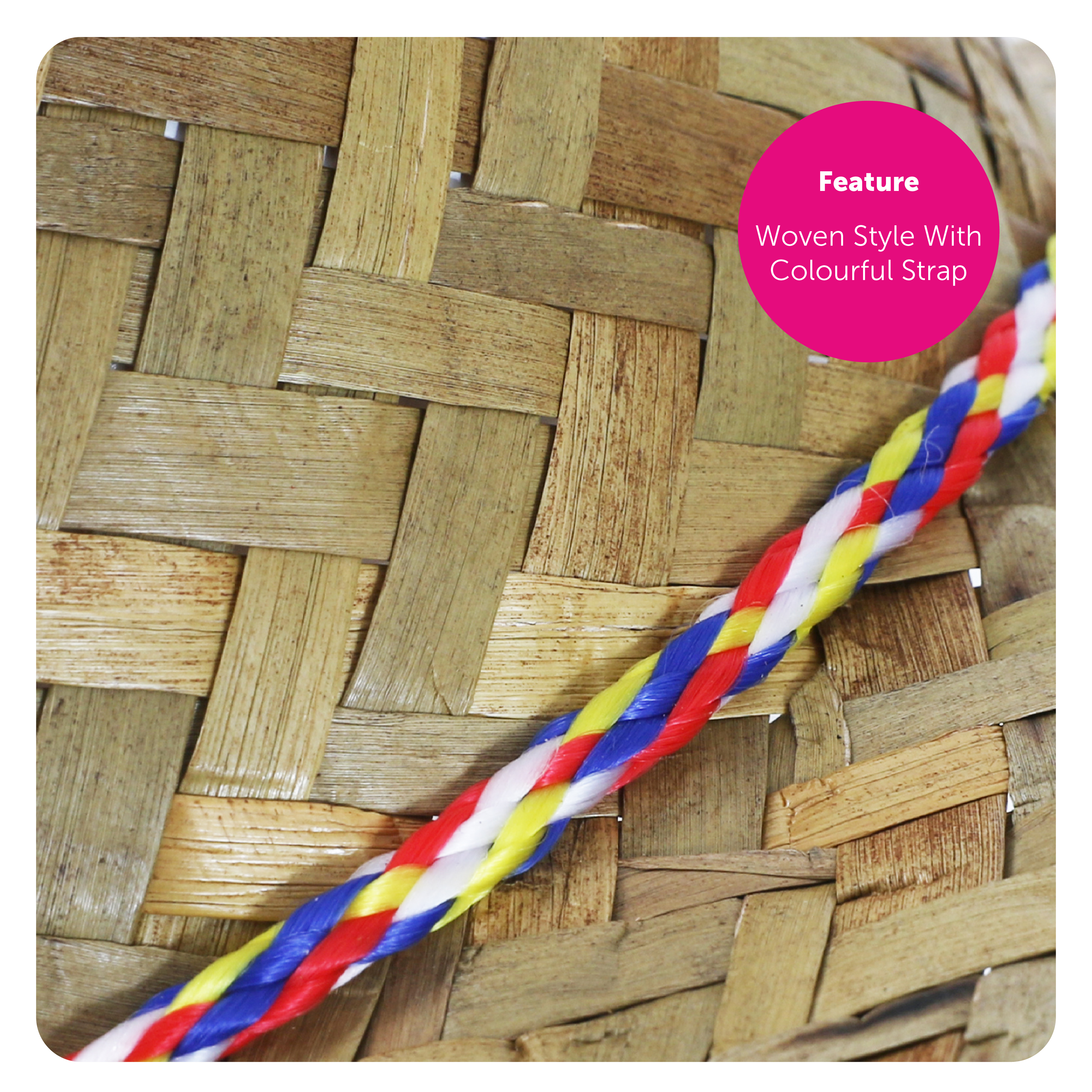 COOLIE HAT DETAILS: This Coolie Hat is made from a sturdy Straw material, woven into a comfortable, rounded shape and finished off with a brightly coloured, rope strap!