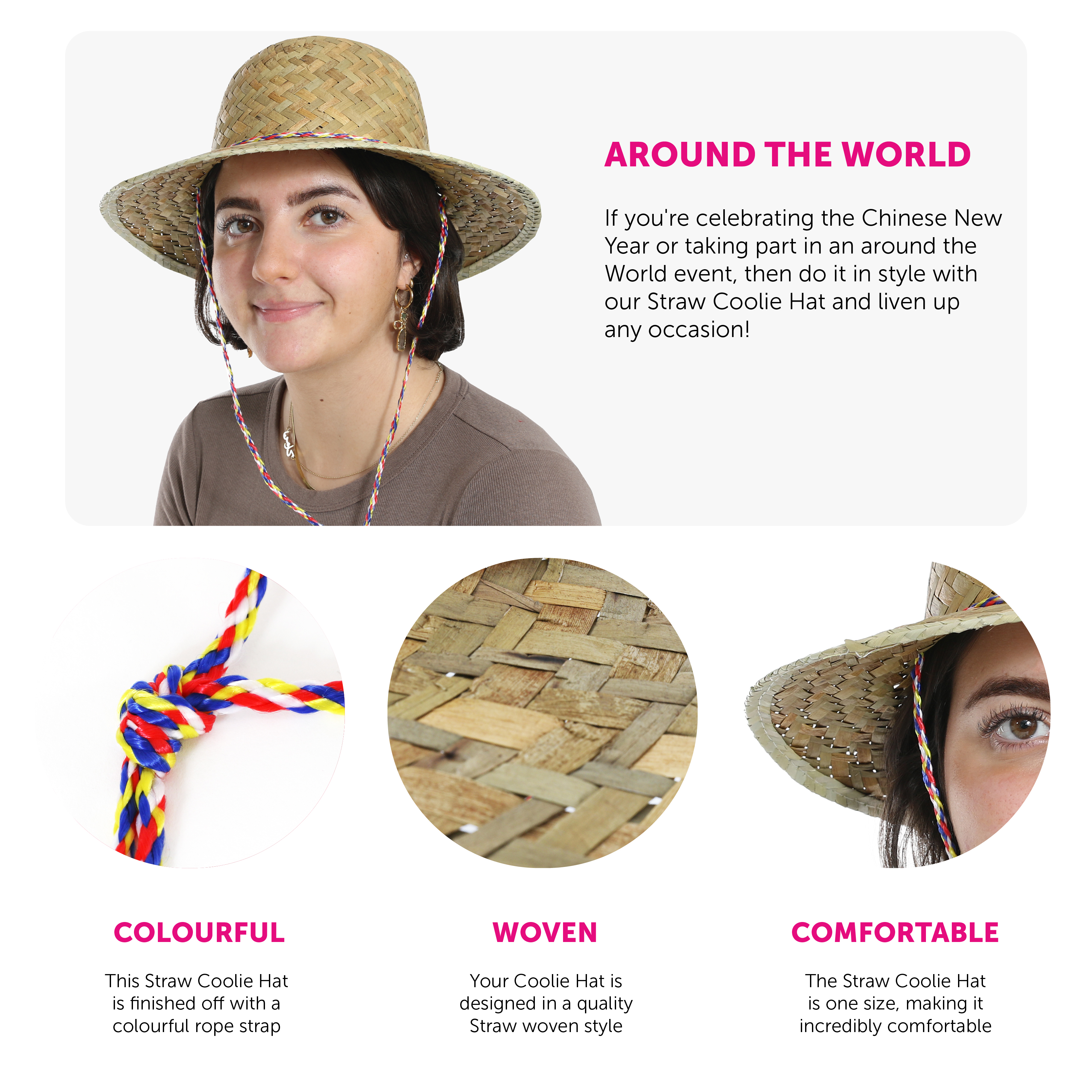 STRAW COOLIE HAT: If you're celebrating the Chinese New Year or taking part in an around the World event, then do it in style with our Straw Coolie Hat and liven up any occasion!