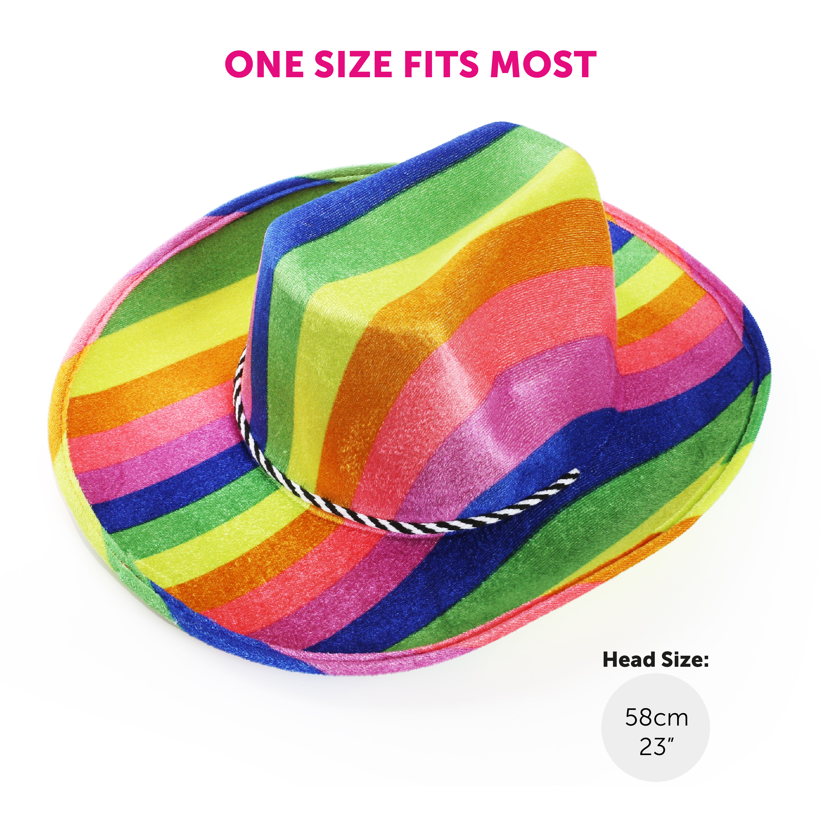 ONE SIZE FITS MOST: The Rainbow Felt Cowboy Hat is designed to fit most Adults comfortably with a head size of 58cm (23"), and an adjustable strap that can be used to get the perfect fit to your head!
