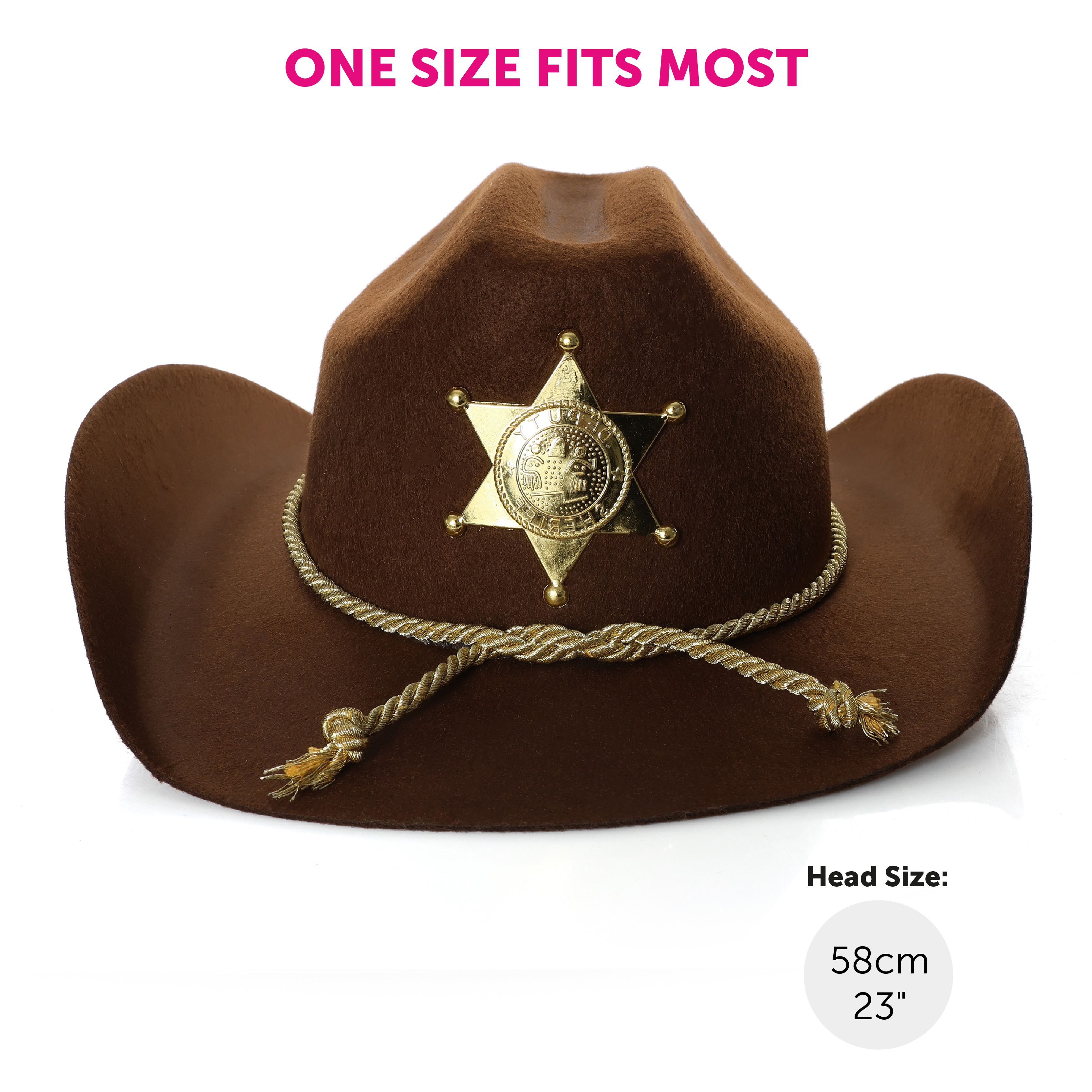 ONE SIZE FITS MOST: This Brown US Sheriff Hat is a suitable size for most Adults to wear comfortably with a head size up to 58cm (23")