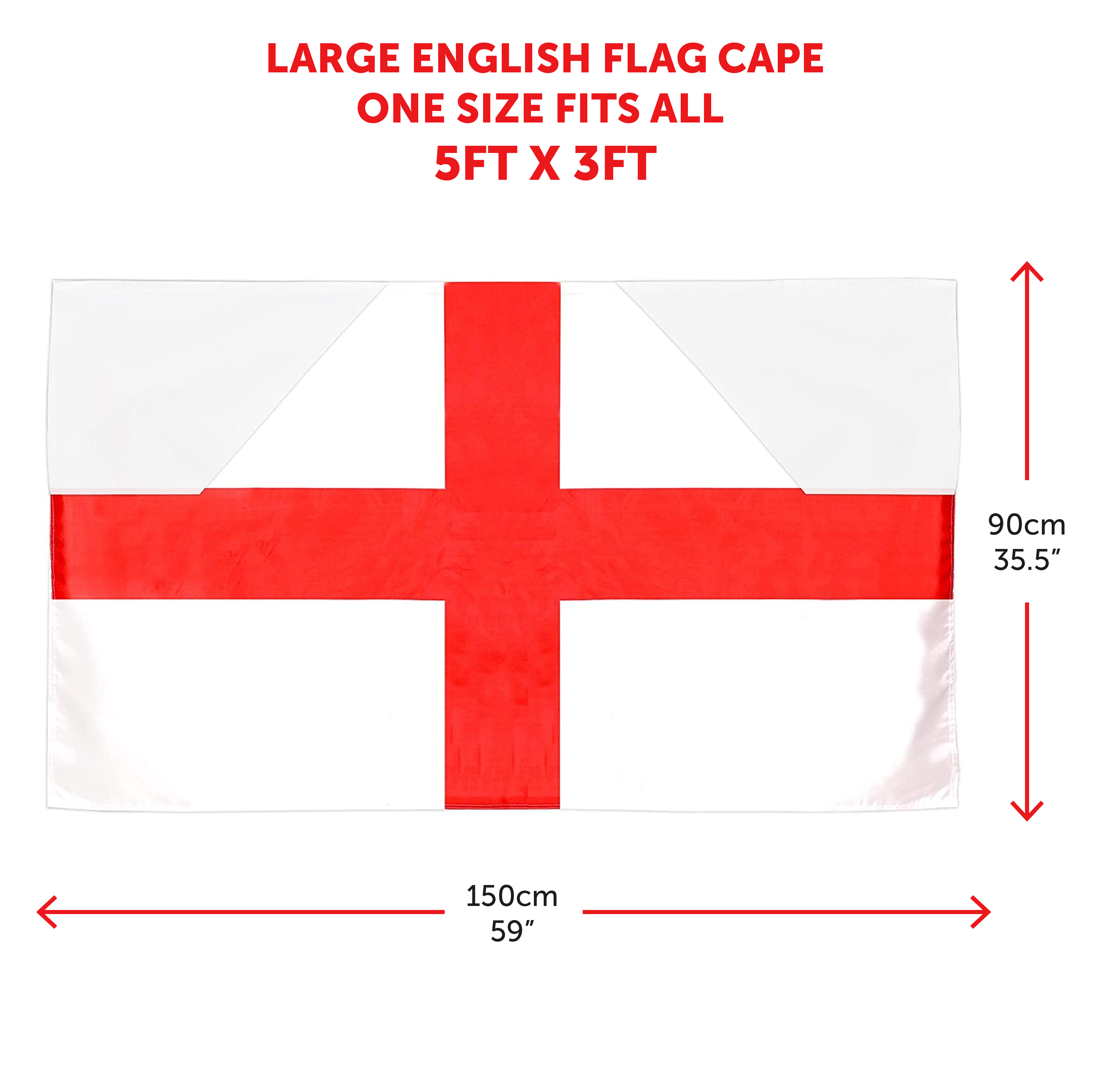 VERSATILE CAPE: Our reusable and lightweight English Flag Cape is made from a strong fabric with 2 arm holes to wear with comfort and ease for any location whether it be indoors or outside!