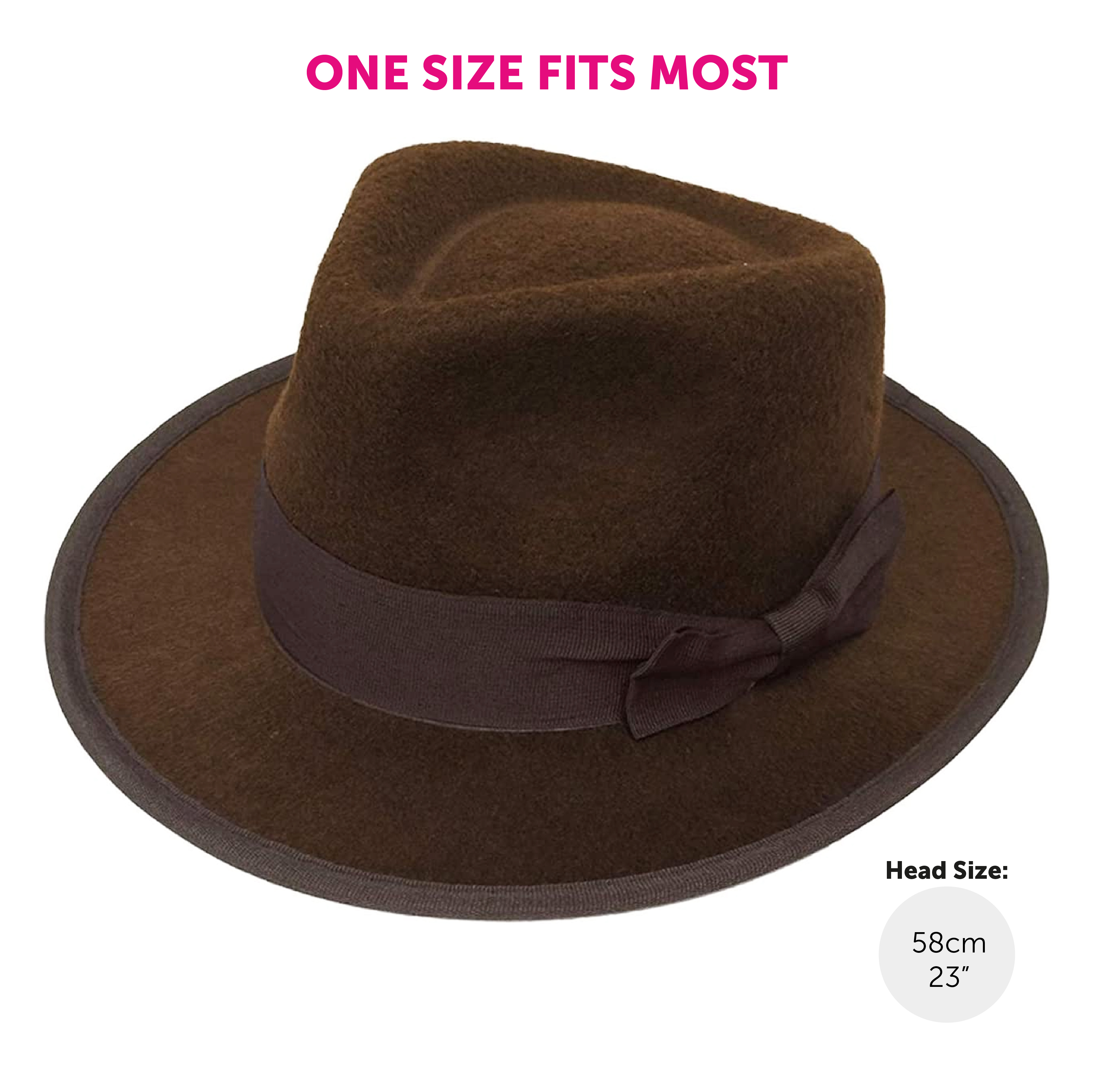 GREAT SIZED ACCESSORIES: The Black Whip is a great addition to the Adults Explorer Costume, the full length measures 172cm (68") and the Brown Hat is designed to fit most Adults comfortably with a head size of 58cm (23")