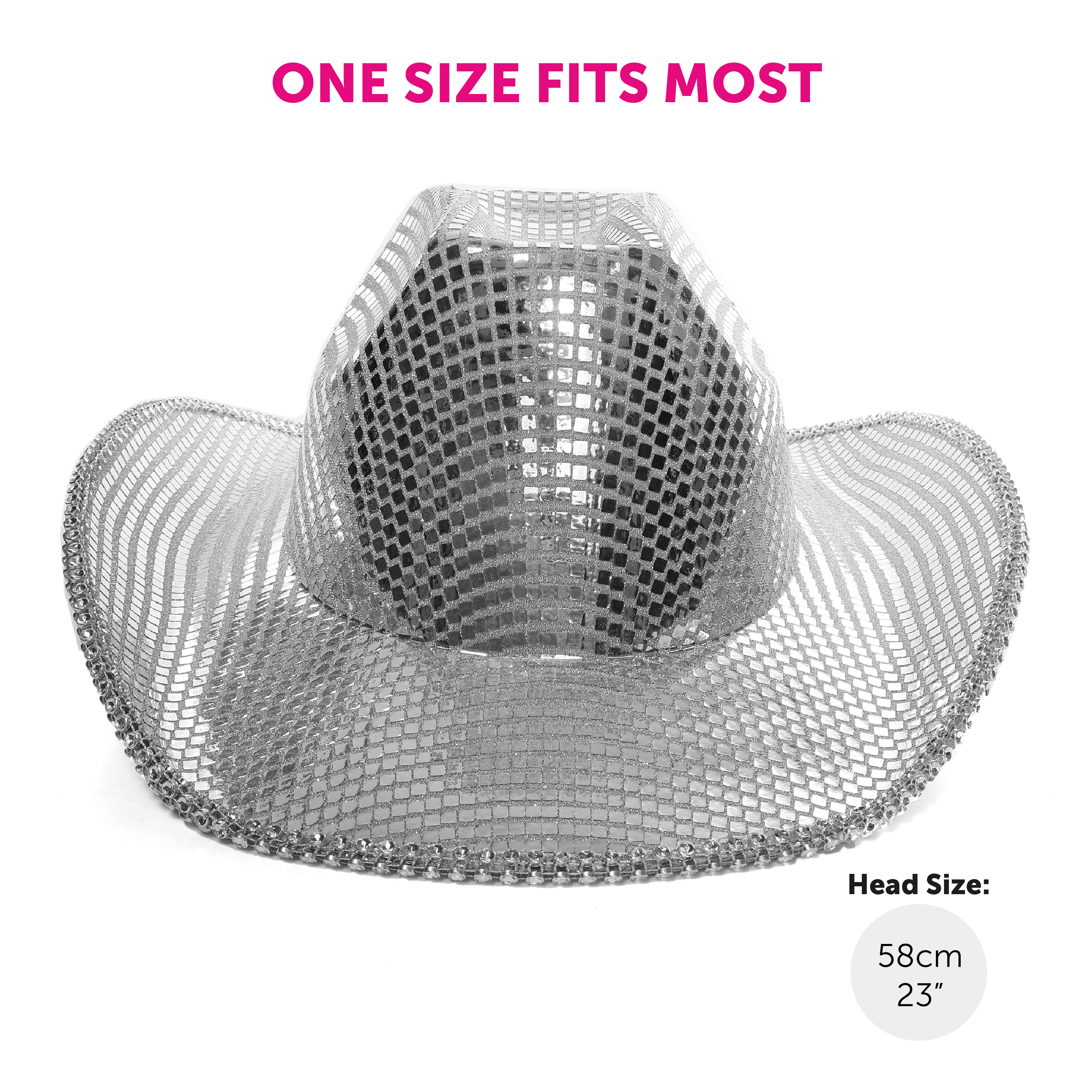 ONE SIZE FITS MOST: The Mirrorball Cowboy Hat is the perfect size for most to wear with a suitable head size of 58cm (23"), and an adjustable string to wear comfortably all night long!