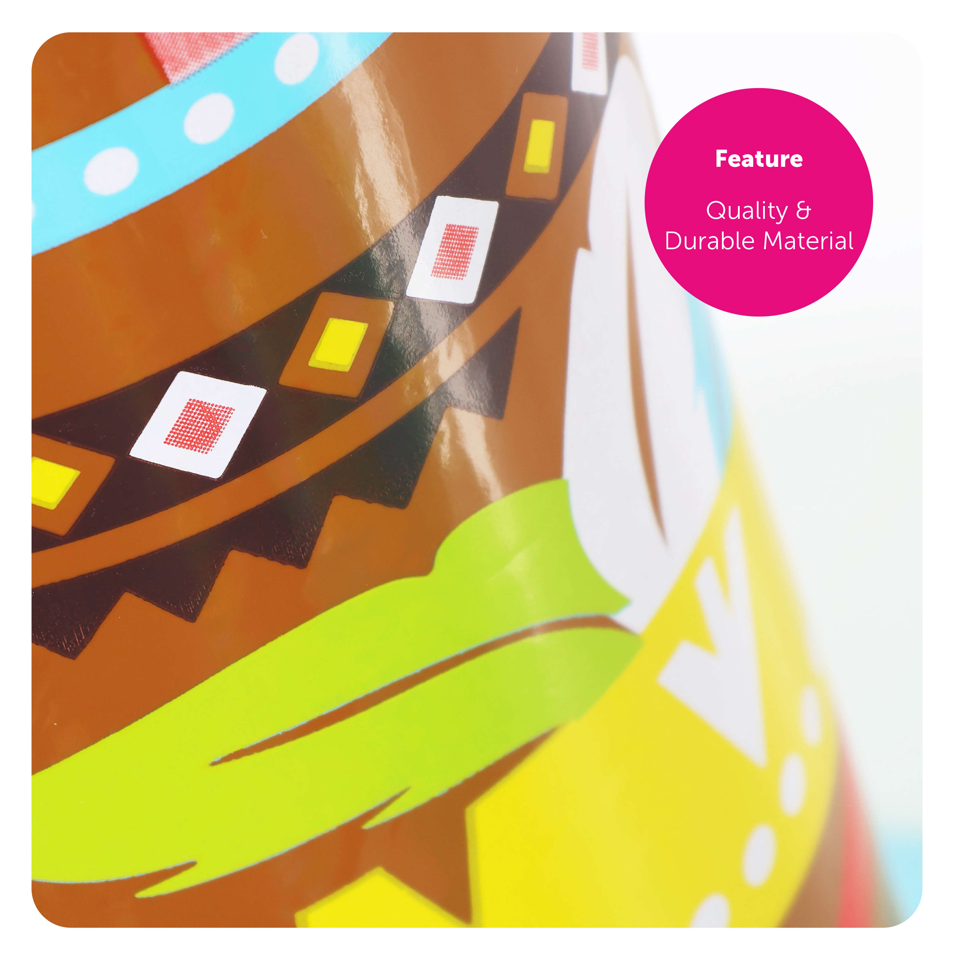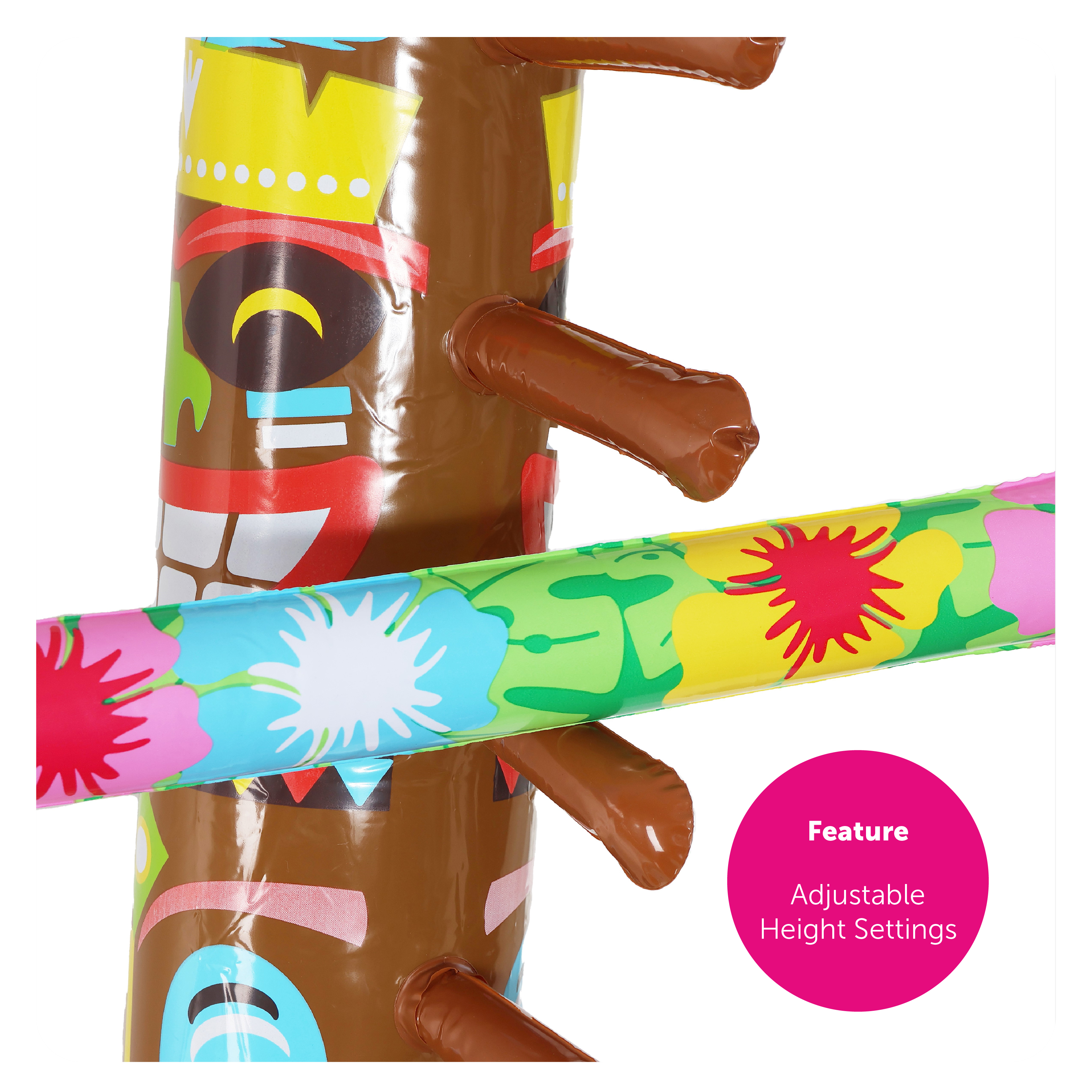 INFLATABLE DETAILS: This Inflatable Limbo Game includes 2x Posts covered in Tropical Tiki designs, with Hawaiian Flowers on the base and 9 height settings, and 1x Limbo Pole covered in colourful Hawaiian Flowers! This Limbo Game Set is incredibly easy to inflate and deflate!