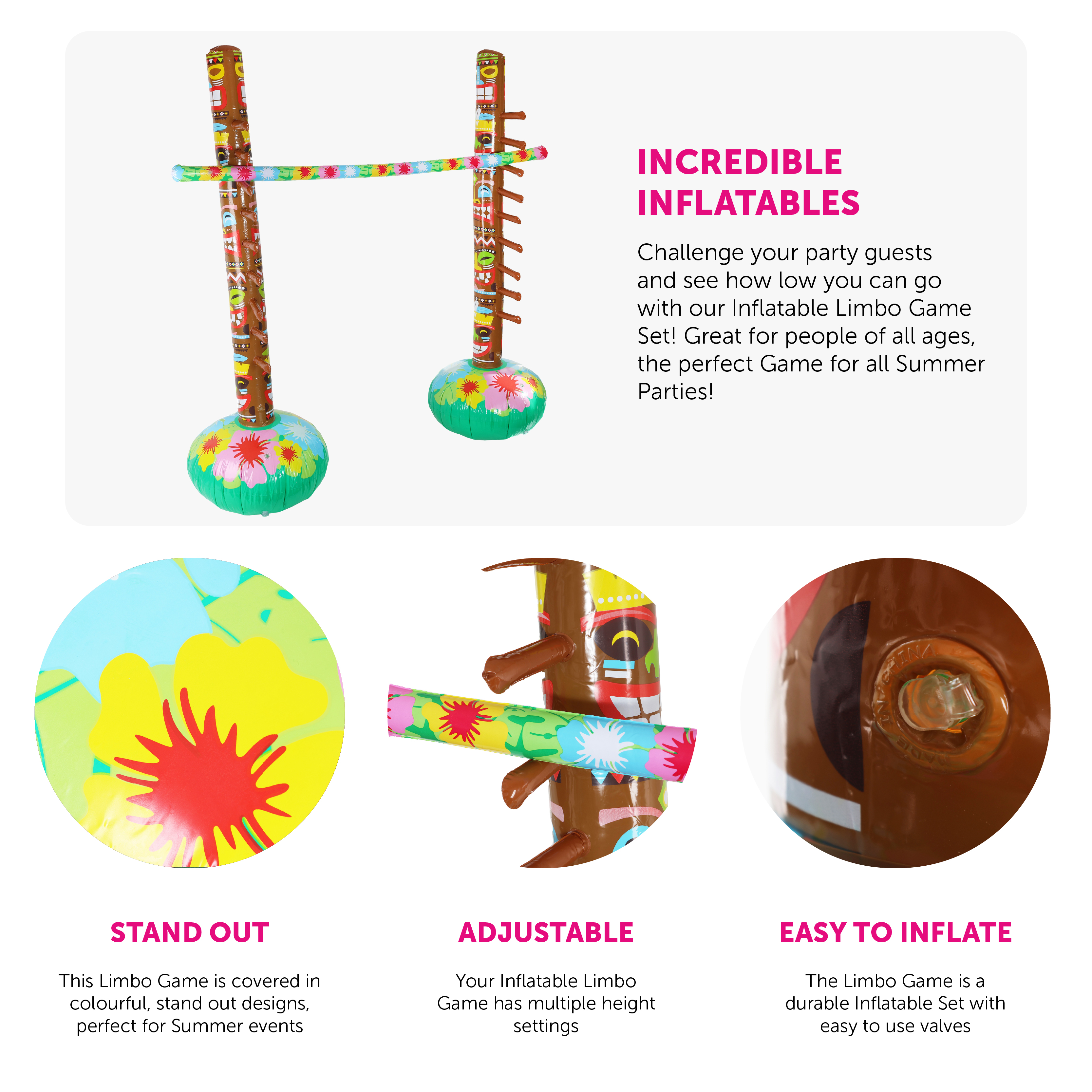 INFLATABLE LIMBO GAME: Challenge your party guests and see how low you can go with our Inflatable Limbo Game Set! Great for people of all ages, the perfect Game for all Summer Parties!
