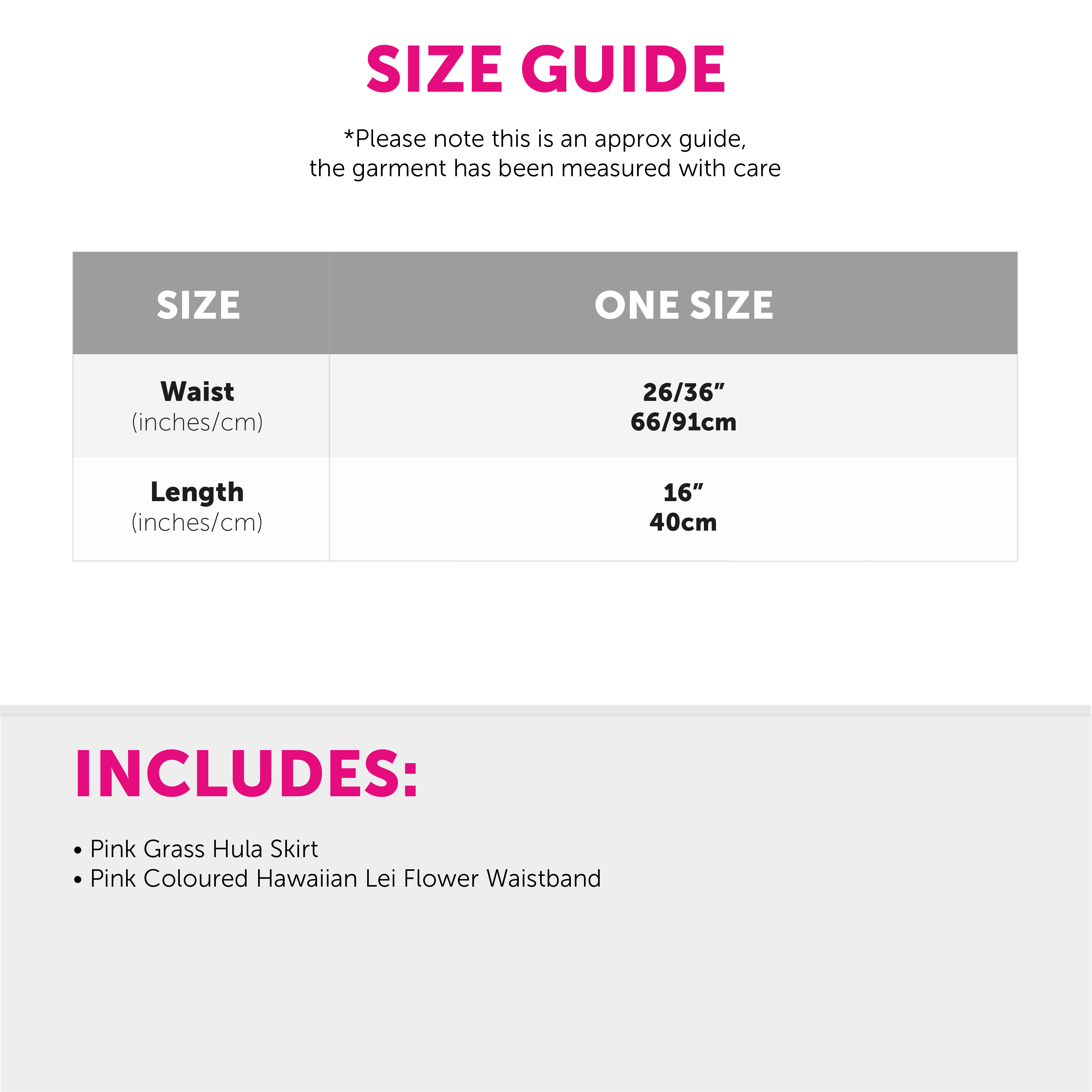 ONE SIZE FITS MOST: The Pink Hula Skirt is available in one size, with the Waist measuring 26/36" (66/91cm) and a Length of 16" (40cm), it is comfortable for most to wear!