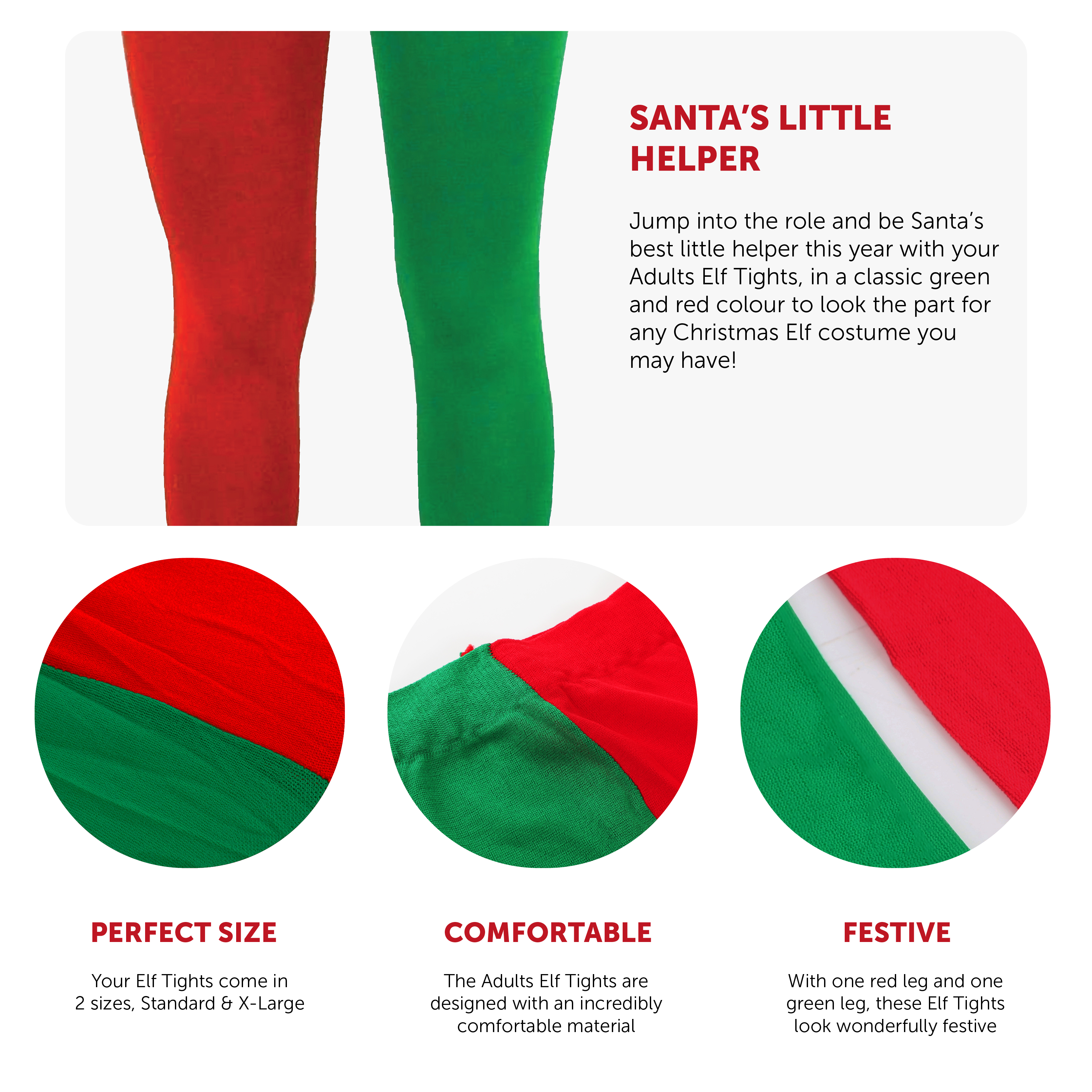 ADULTS ELF TIGHTS: Jump into the role and be Santa’s best little helper this year with your Adults Elf Tights, in a classic green and red colour to look the part for any Christmas Elf costume you may have!