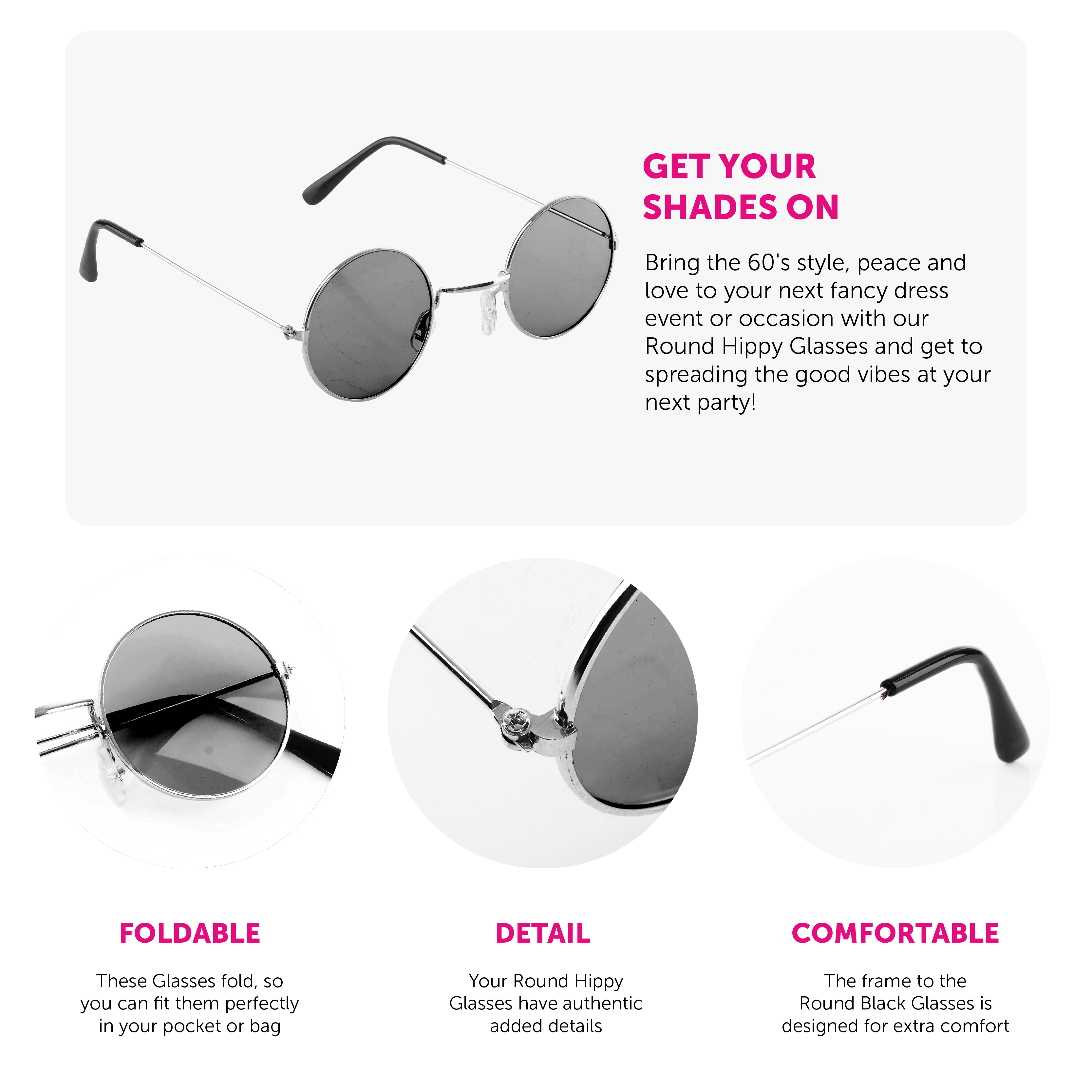 PERFECT FOR 60'S FANCY DRESS : Whether you’re donning a classic style from the 1960's, your favourite musician, or any other fancy dress costume you need, these Round Black Hippy Glasses are perfect for you!