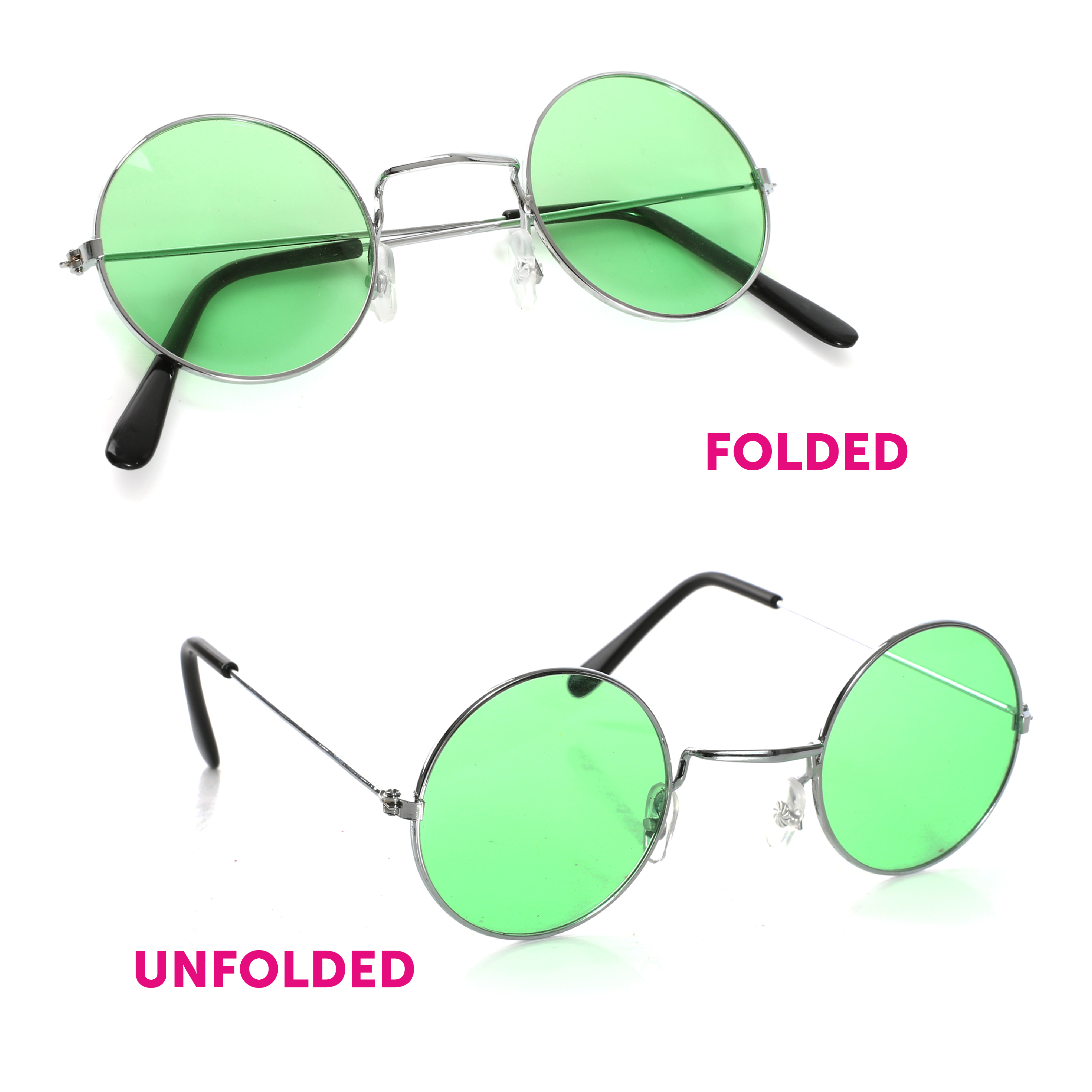 AVAILABLE IN MULTIPLE PACKS: Your Round Green Hippy Glasses are available in multiple packs, from Single, Packs of 2, Packs of 3, Packs of 6, Packs of 12, and Packs of 24, for you to share amongst yourself and your friends!
