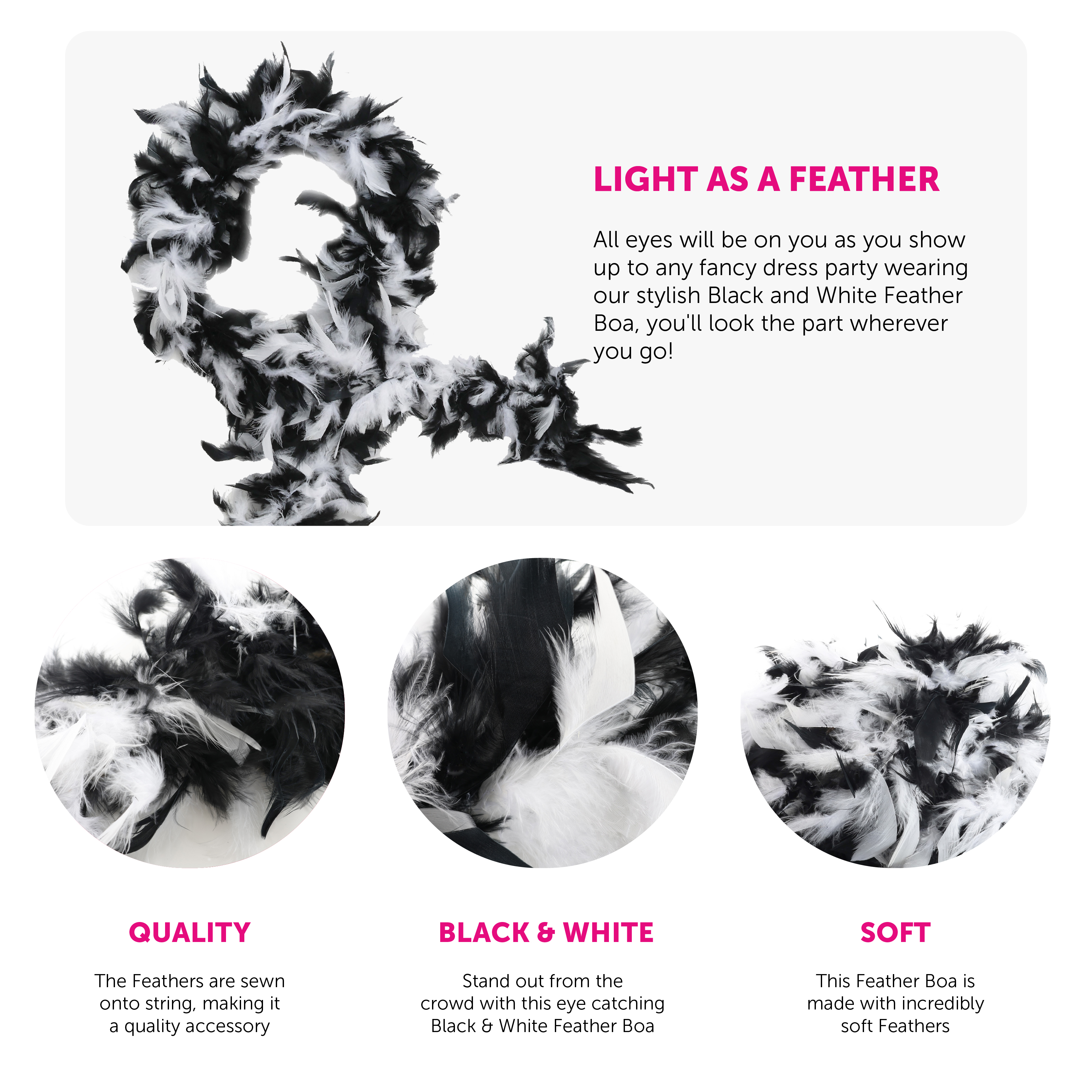 Liven up your costume for any swingin' time of the year with this Black and White Feather Boa 65g! Be the queen of the swingers with this old fashioned, but super flashy and stylish Black and White Feather Boa 65g! Perfect for Hen Nights and 1920's Parties!