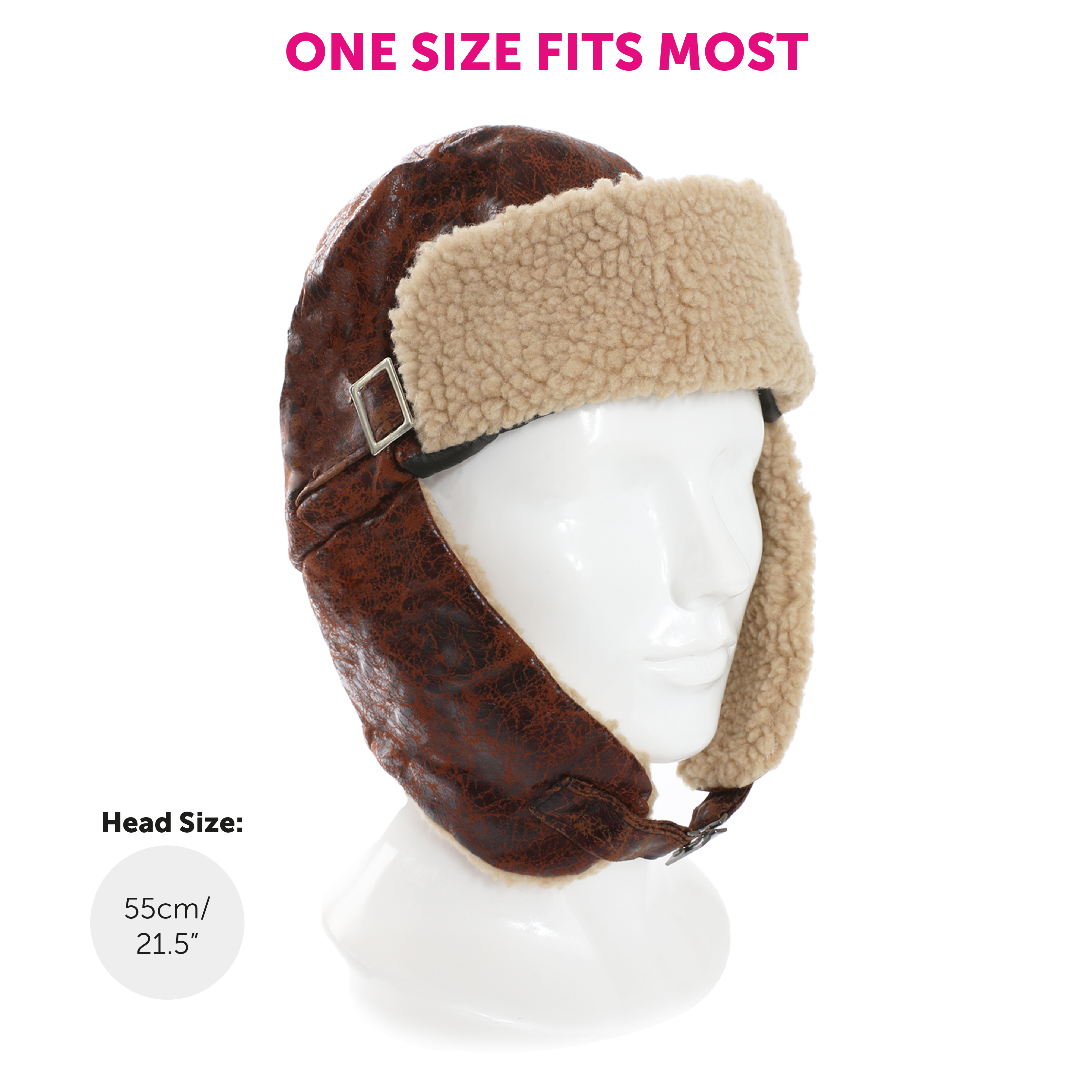 AVIATOR PILOT HAT DETAILS: Your Aviator Pilots Hat is a distressed leather look Aviator Hat with a Metal Clasp and Faux fur lining on the ears for the authentic, classical look!