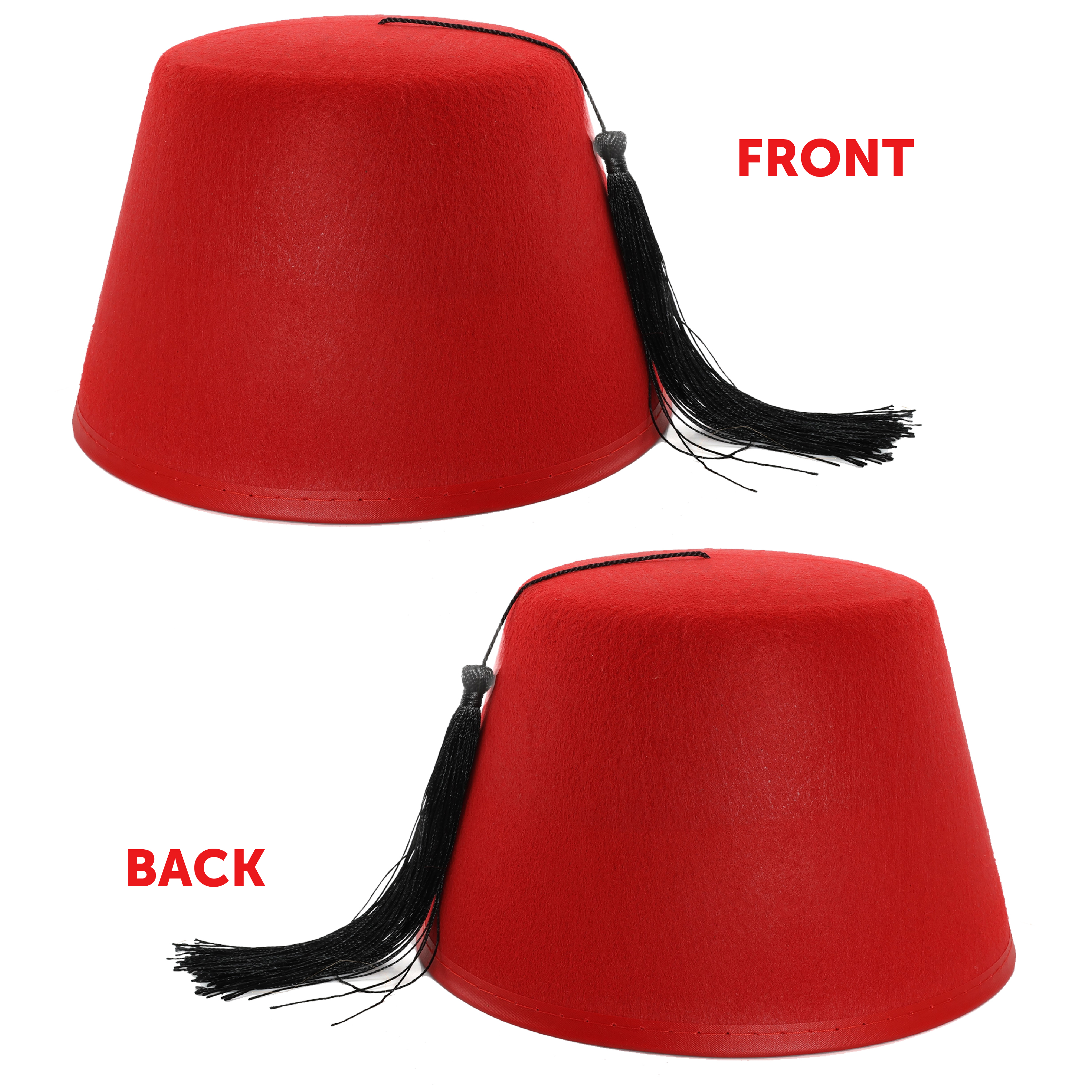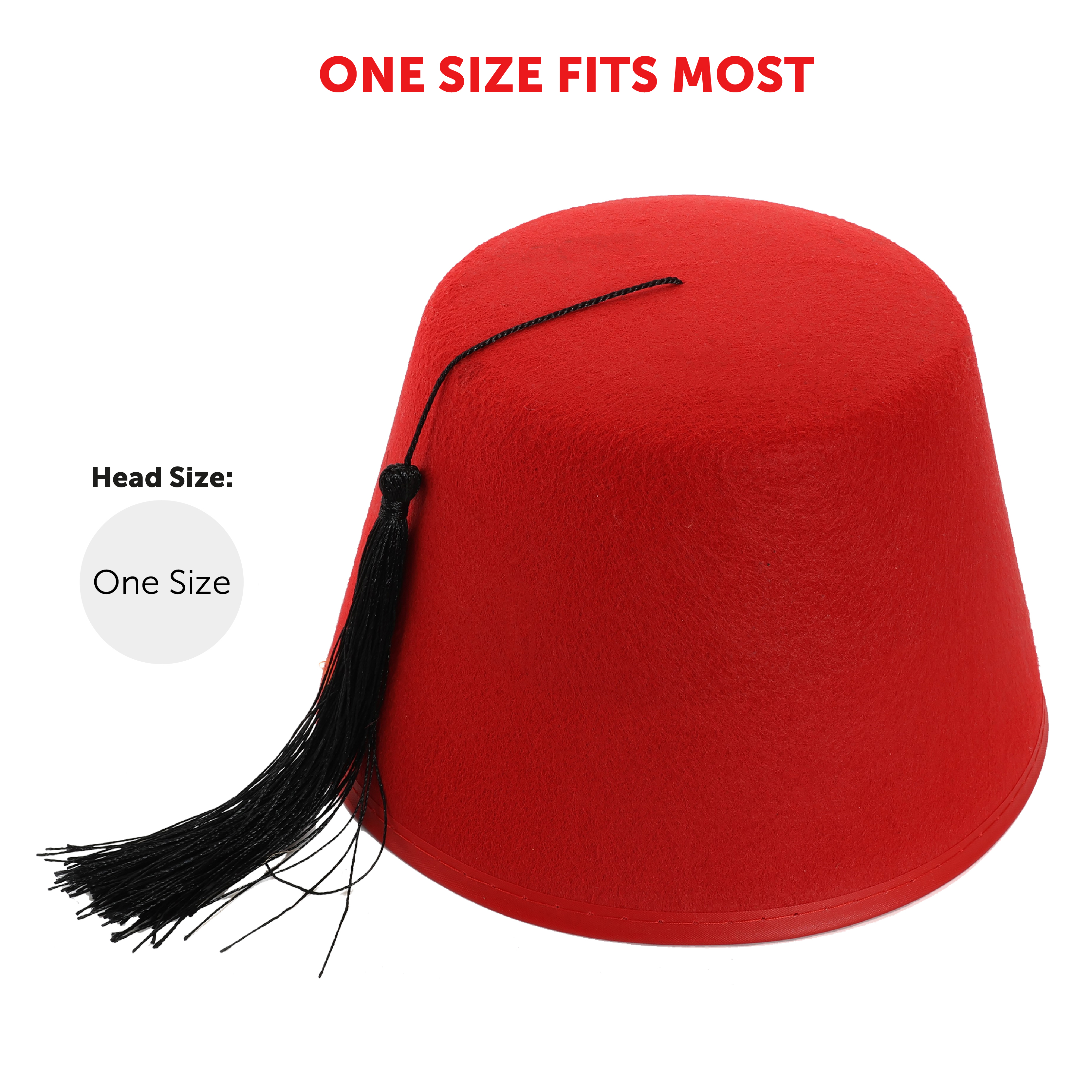 RED FEZ HAT DETAILS: Your Red Fez Hat is a superbly high-quality hat, with a black tassel on the top of the hat, and a unisex size that will fit any adult or child comfortably with ease!