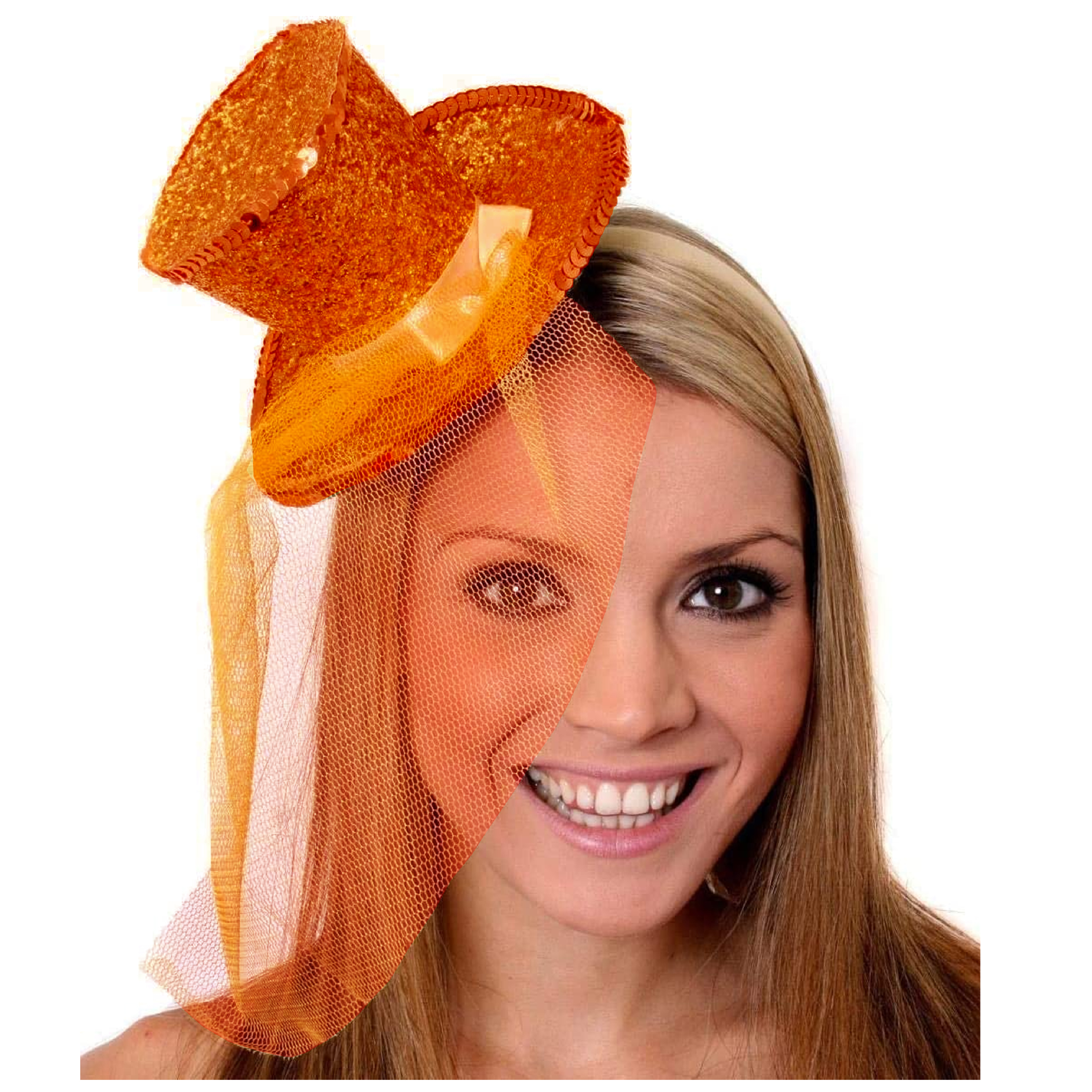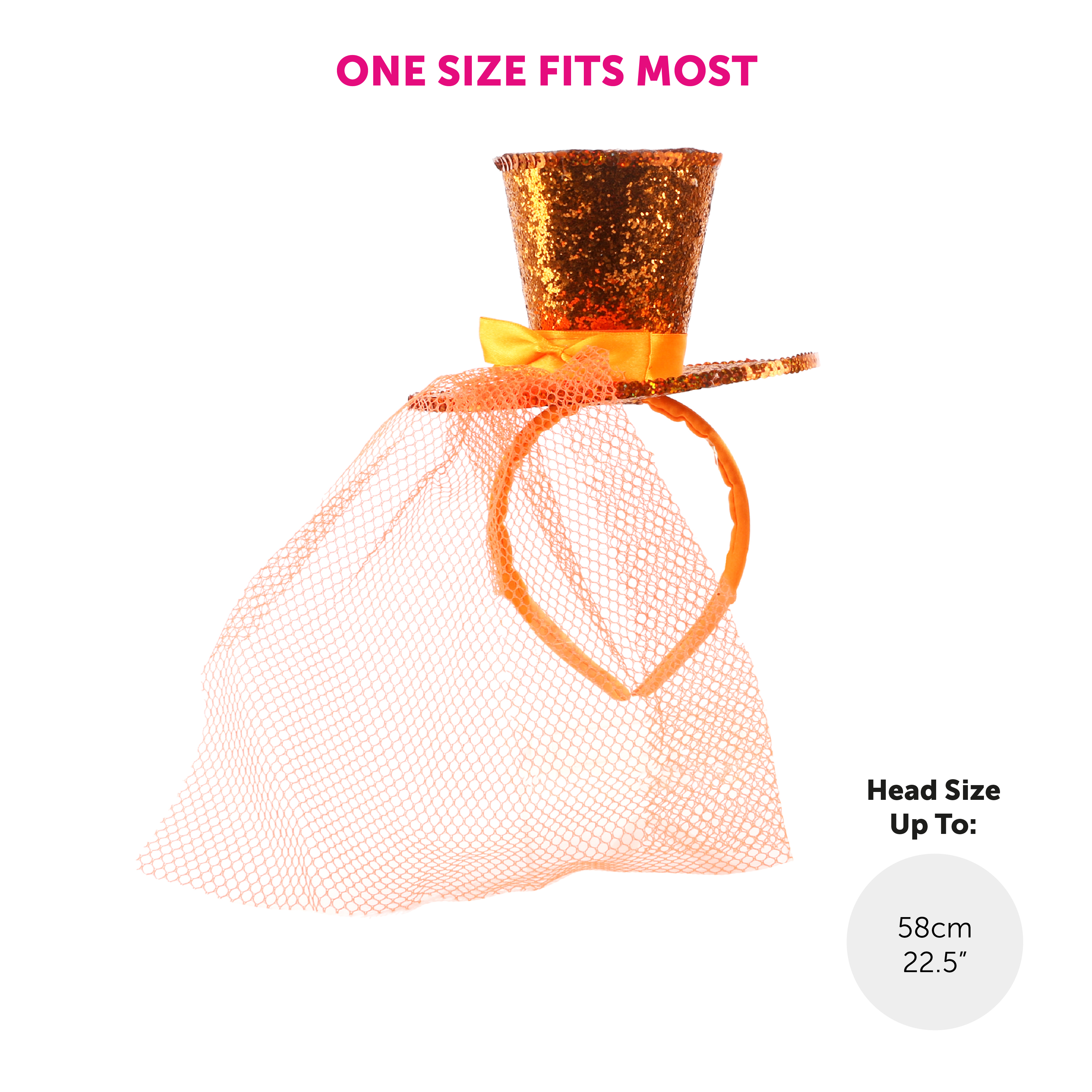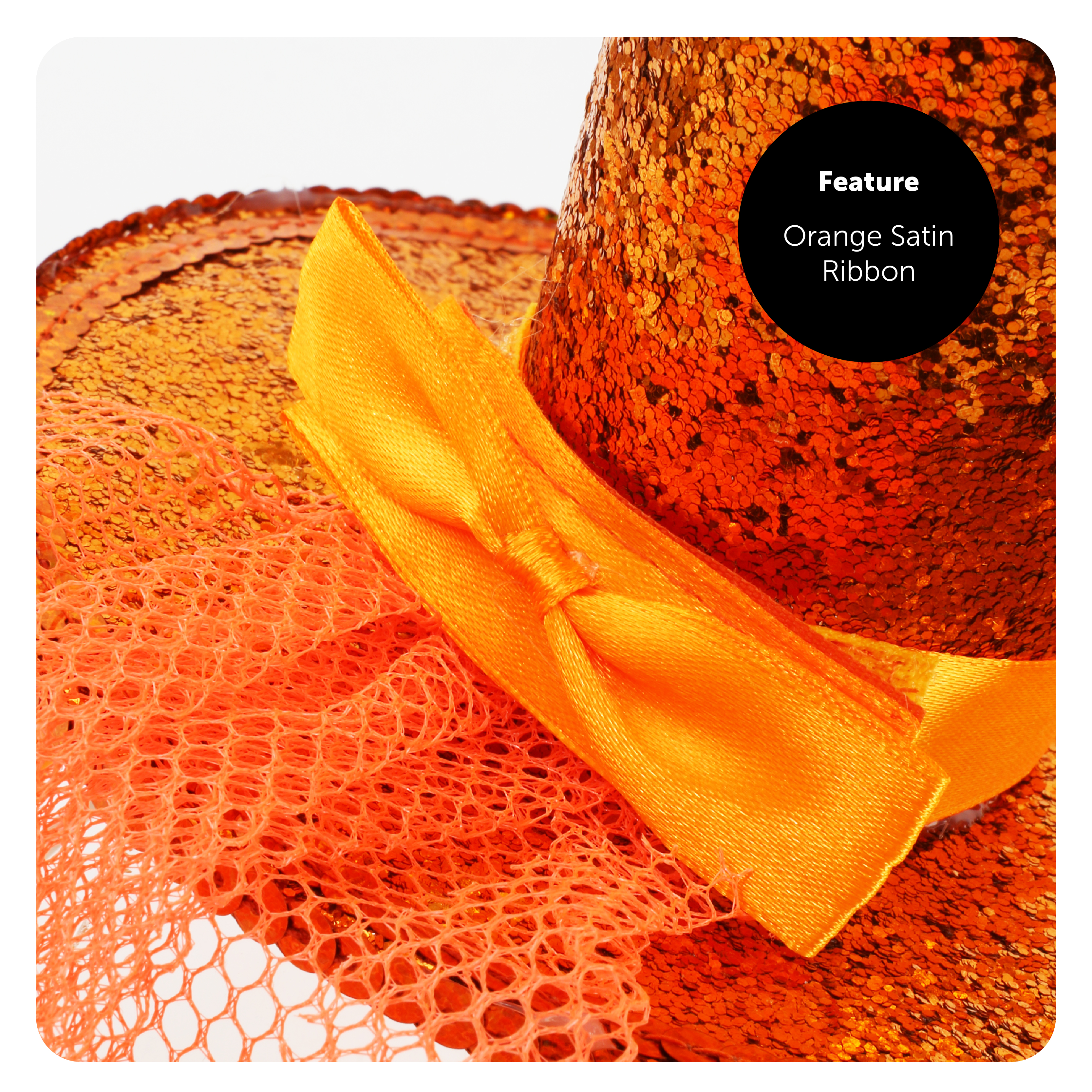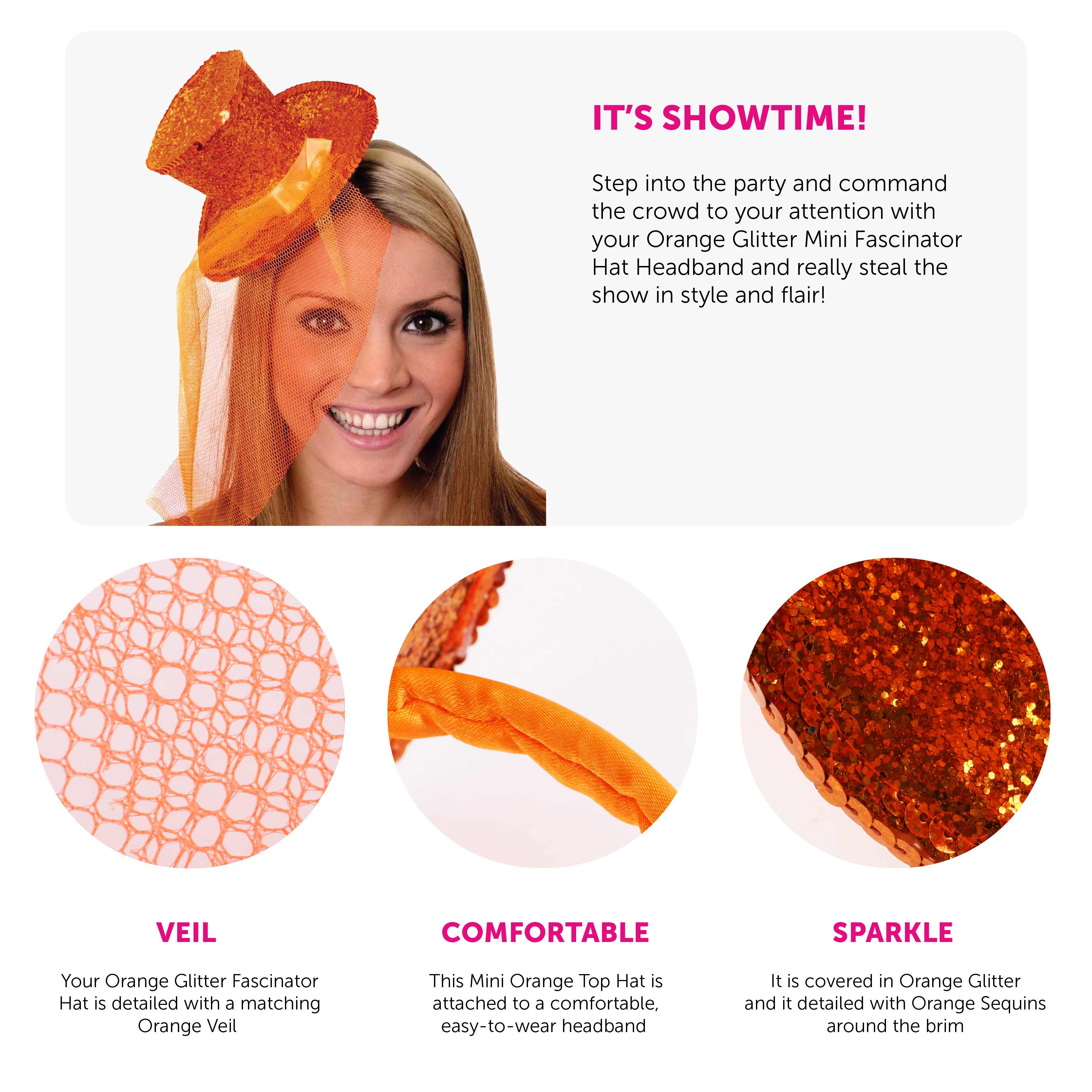 PERFECT FOR ANY FANCY DRESS EVENTS: Whether it be for a Fancy-Dress outing, or any other party or event, you can count on our Mini Orange Glitter Fascinator Top Hat for some great memories!