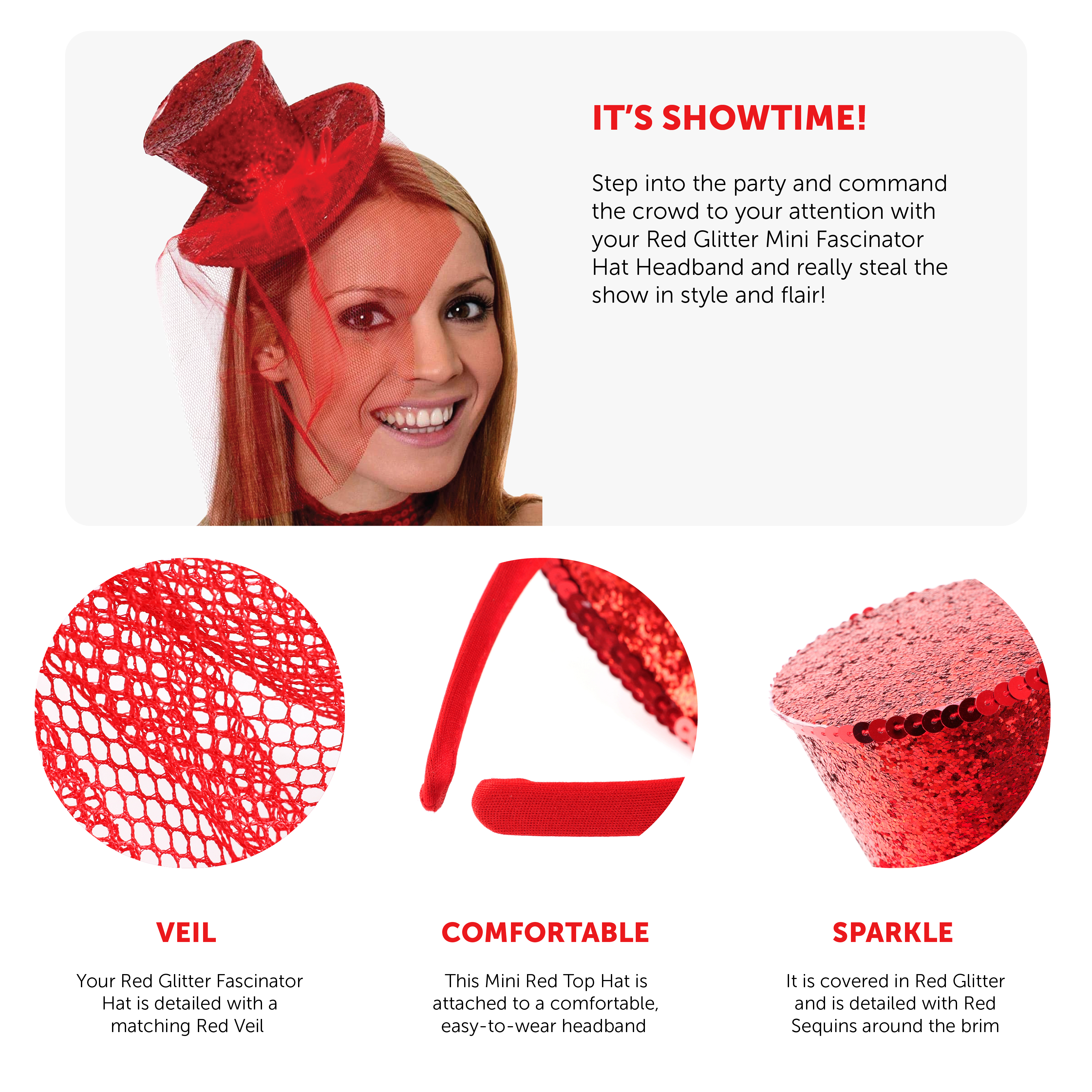PERFECT FOR ANY FANCY DRESS EVENTS: Whether it be for a fancy dress outing, or any other party or event, you can count on our Mini Red Glitter Fascinator Top Hat for some great memories!
