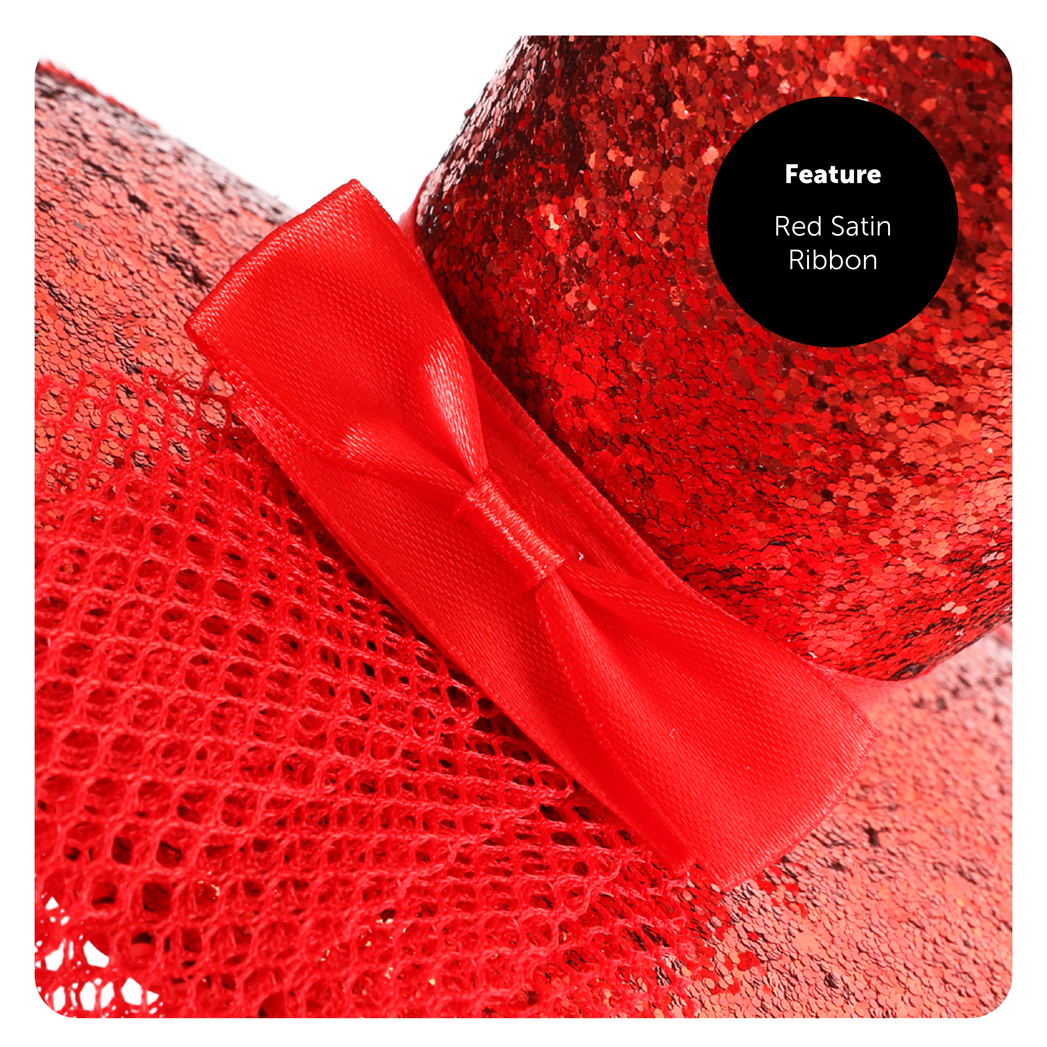 GREAT QUALITY AND FEATURES: A brilliant hat with a lot of intricate details, from the Glitter decorating the hat, the Red ribbon adding the extra flash to the top, followed by a gorgeous Red net to veil your face, it all comes together nicely!