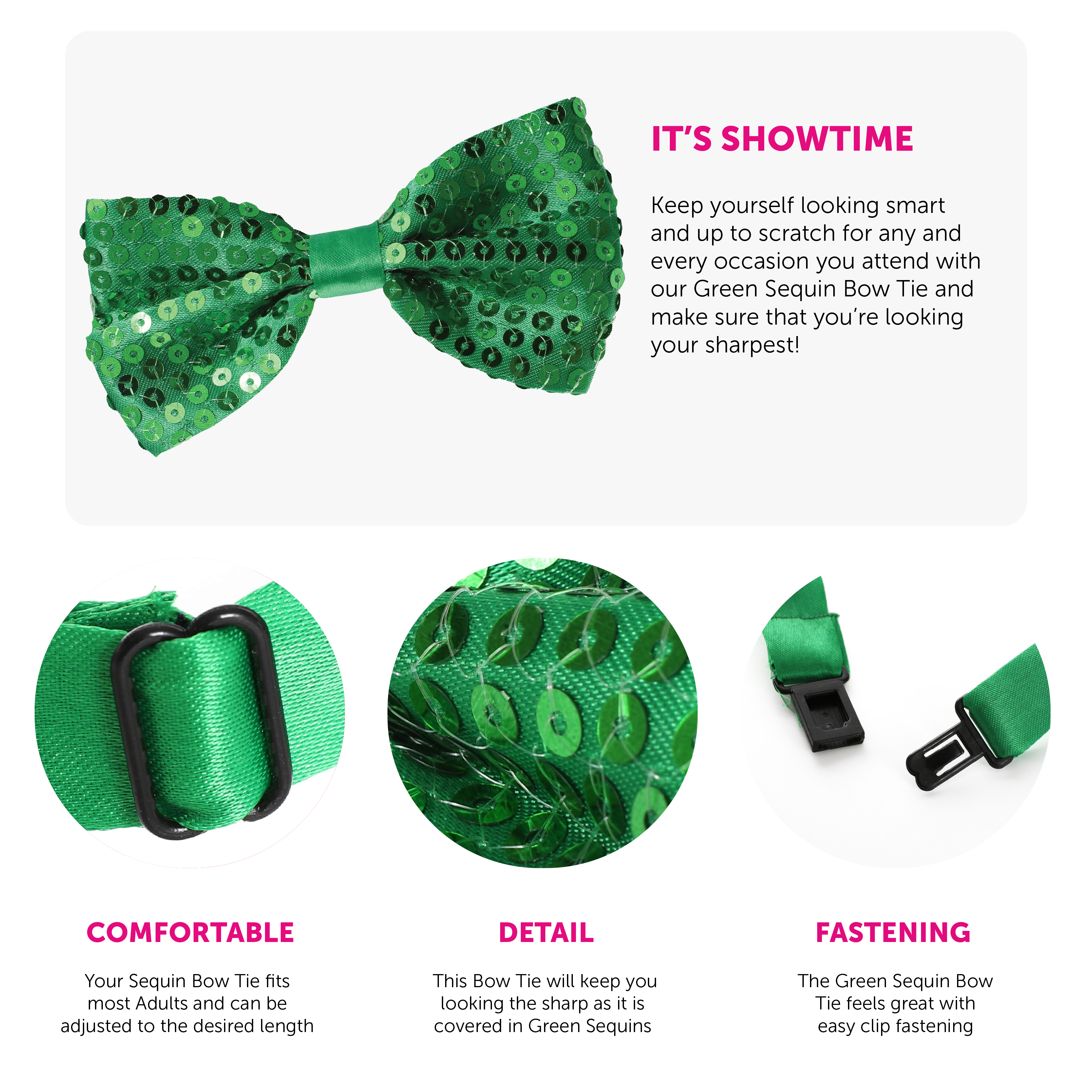 AVAILABLE IN MULTIPLE PACKS: Your Green Sequin Bow Ties are available in multiple packs from Singles, Packs of 6, Packs of 12 and Packs of 24 for you to share with your friends for nights of fun!