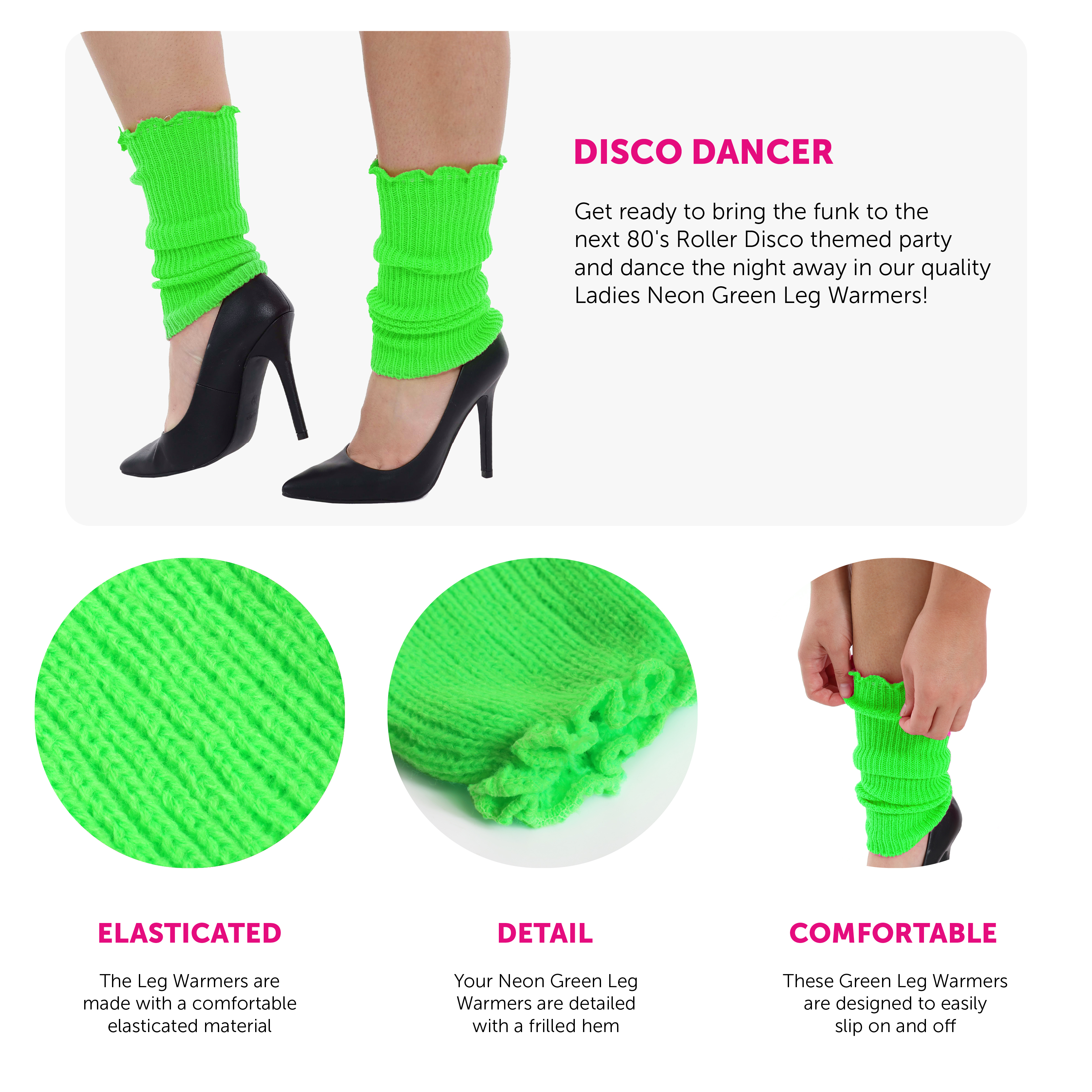 LADIES NEON GREEN LEG WARMERS: Get ready to bring the funk to the next 80's Roller Disco themed party and dance the night away in our quality Ladies Neon Green Leg Warmers!