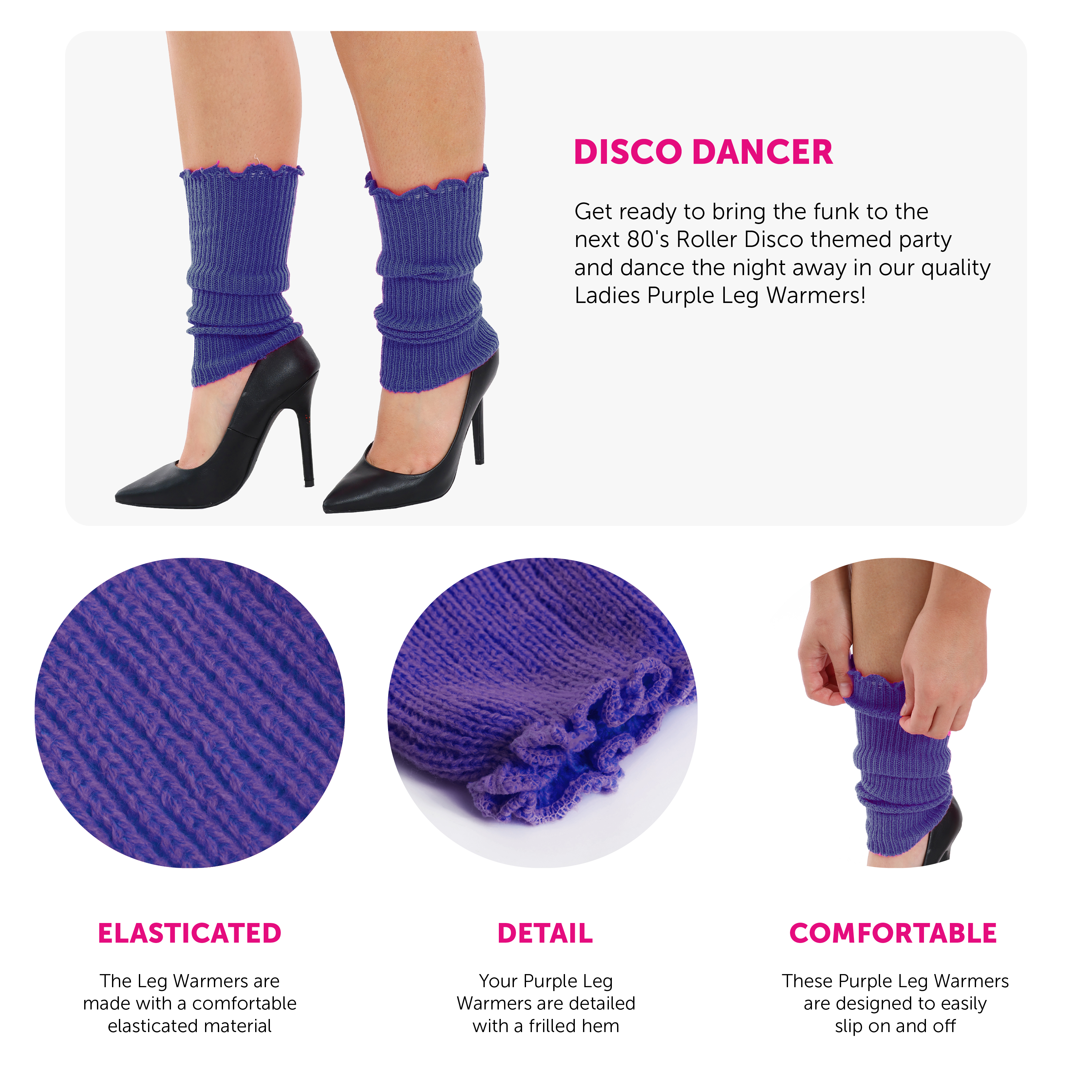 PERFECT FOR 80'S THEMED FANCY DRESS: Whether you're attending an 80's themed Fancy Dress Party, a Roller Disco, or a festival be sure to finish off your outfit with our Ladies Purple Leg Warmers!