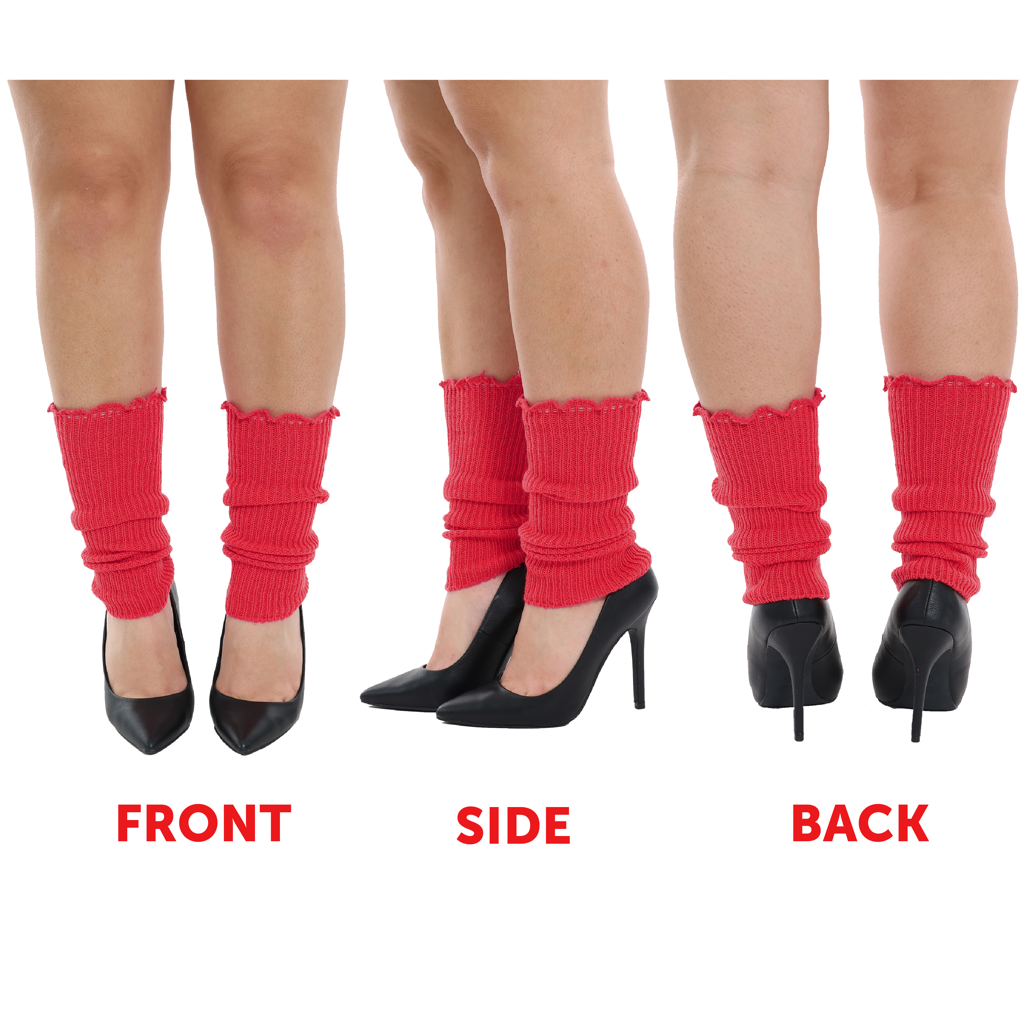 LEG WARMER DETAILS: Your Ladies Leg Warmers are a pair of elasticated, ribbed Red Leg Warmers with subtle frilled edges, the perfect addition to any 80's outfit!
