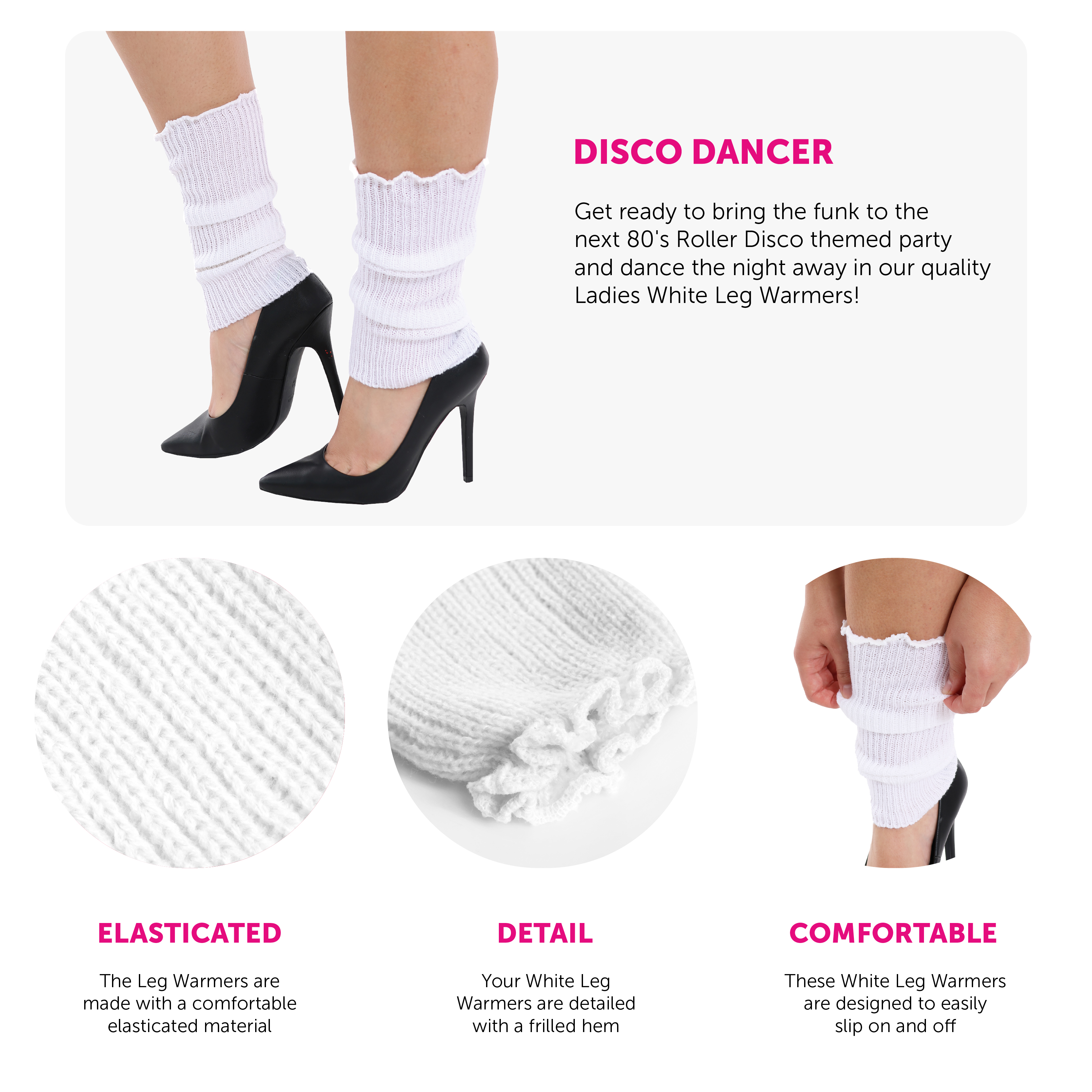 PERFECT FOR 80'S THEMED FANCY DRESS: Whether you're attending an 80's themed Fancy Dress Party, a Roller Disco, or a festival be sure to finish off your outfit with our Ladies White Leg Warmers!