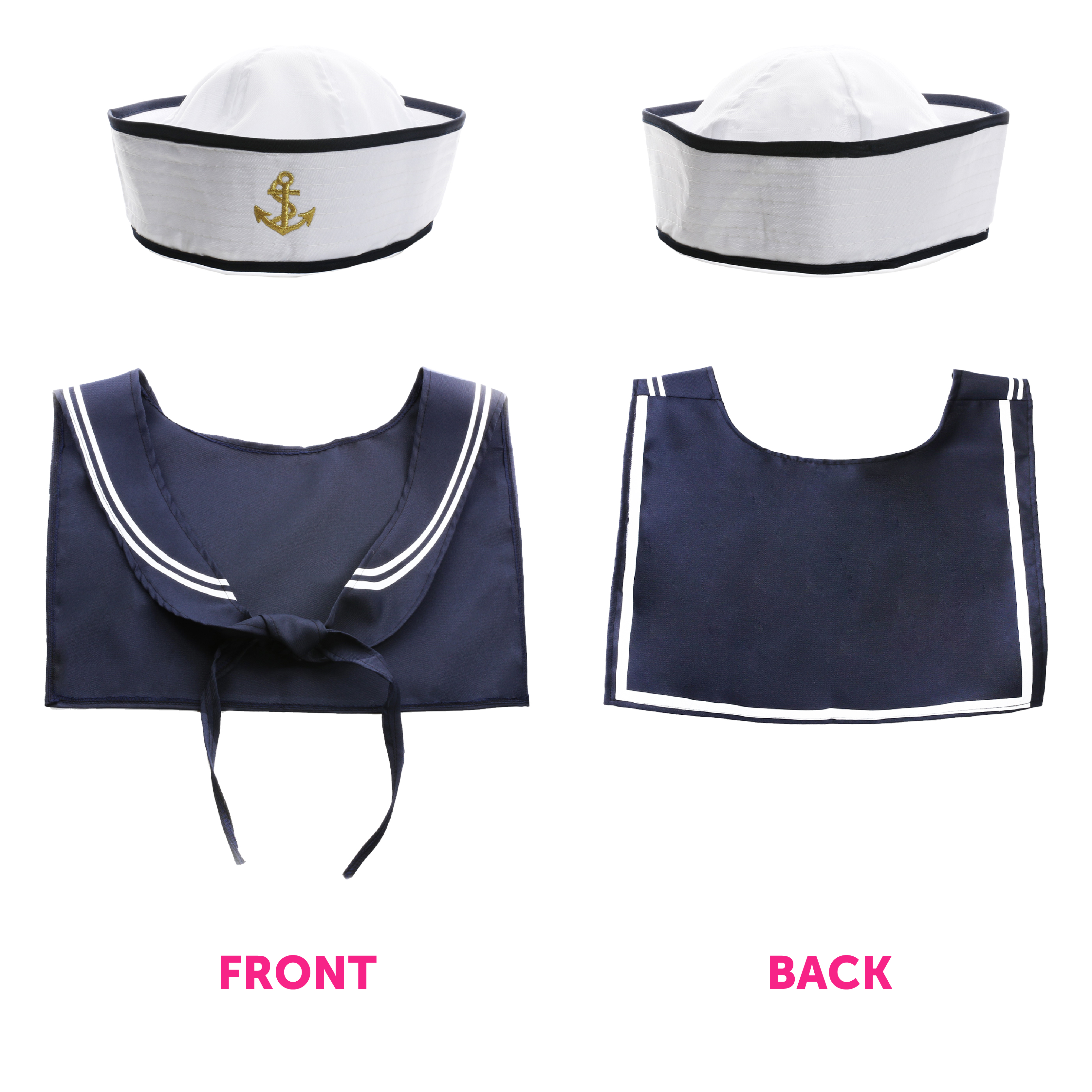 ONE SIZE FITS MOST: The Sailor Costume Accessory Set is one size with the Sailor Hat measuring a suitable head size of 57cm (22.5")