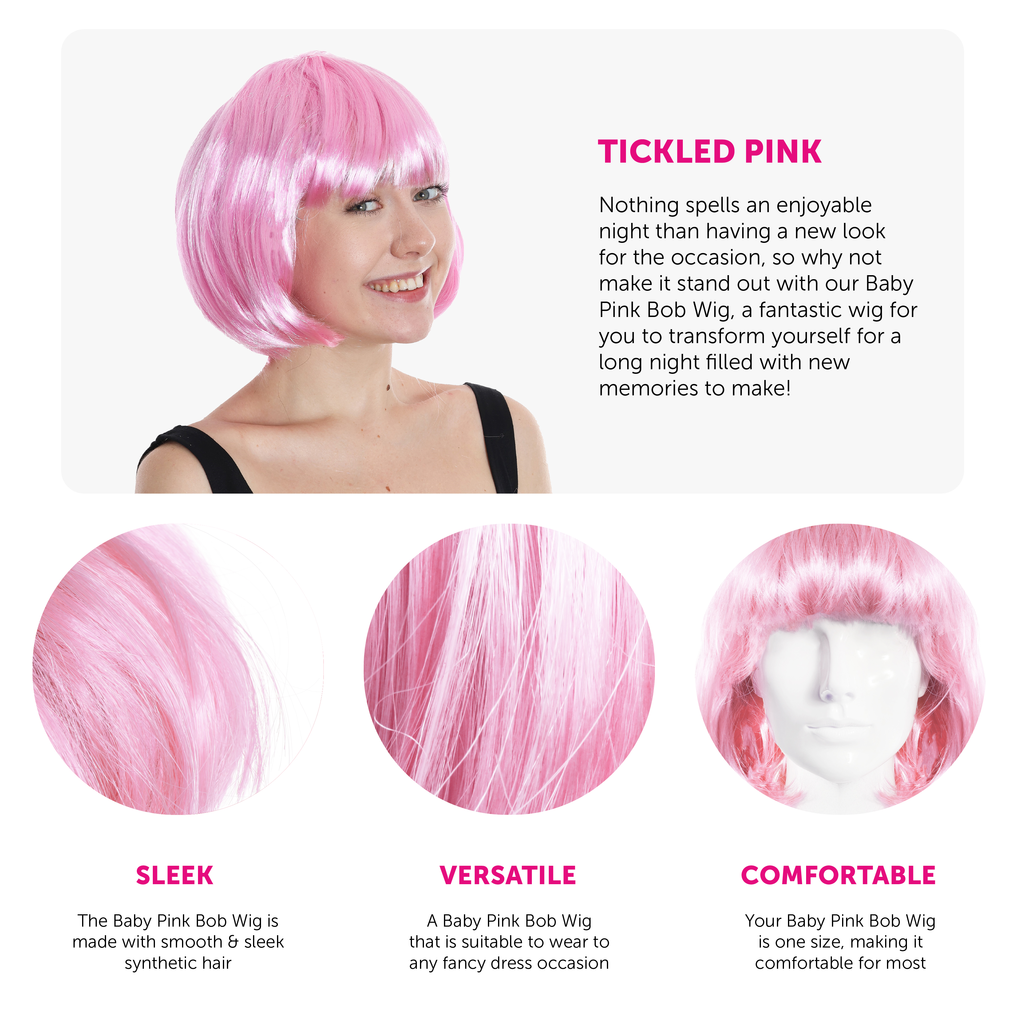 BABY PINK BOB WIG: Nothing spells an enjoyable night than having a new look for the occasion, so why not make it stand out with our Baby Pink Bob Wig, a fantastic wig for you to transform yourself for a long night filled with new memories to make!