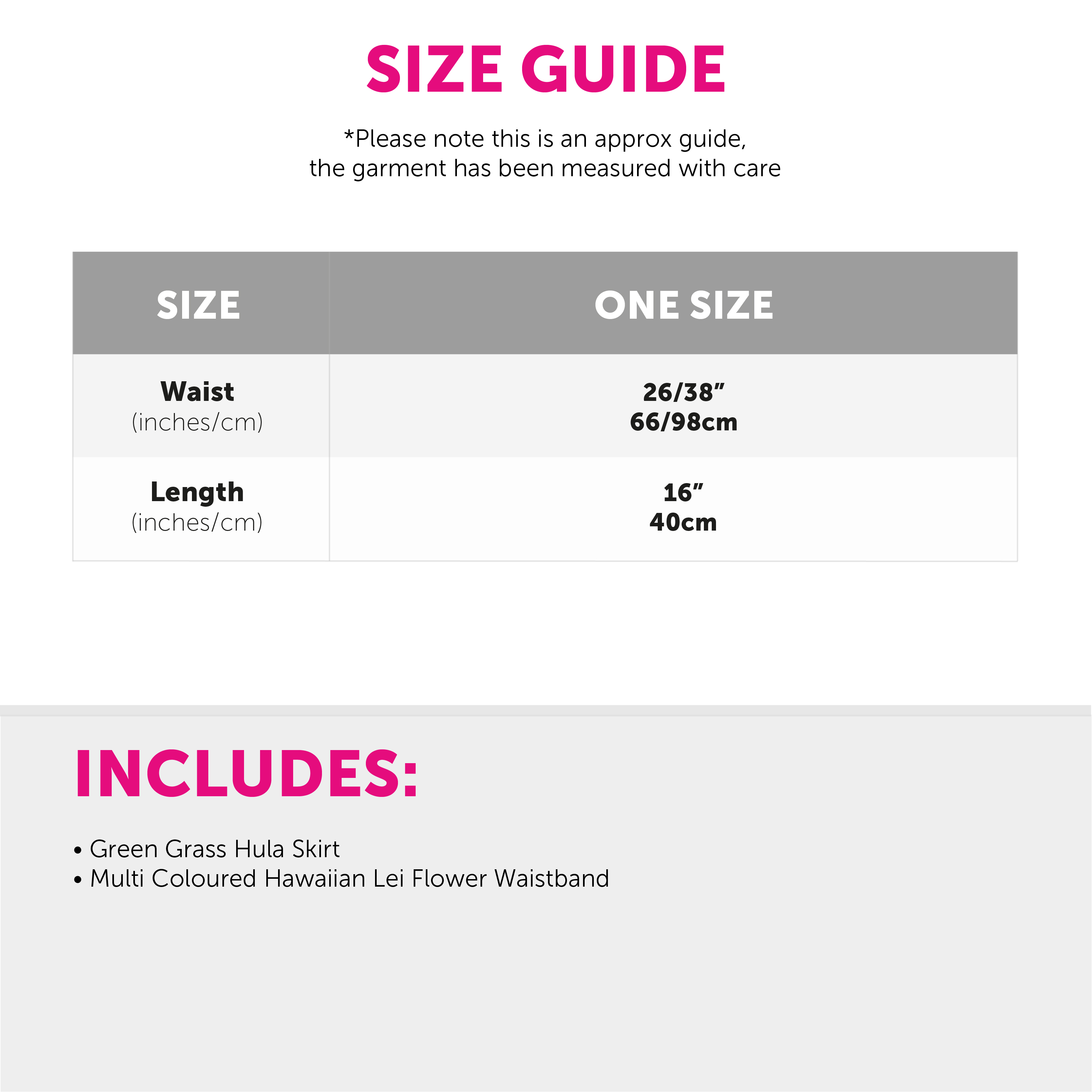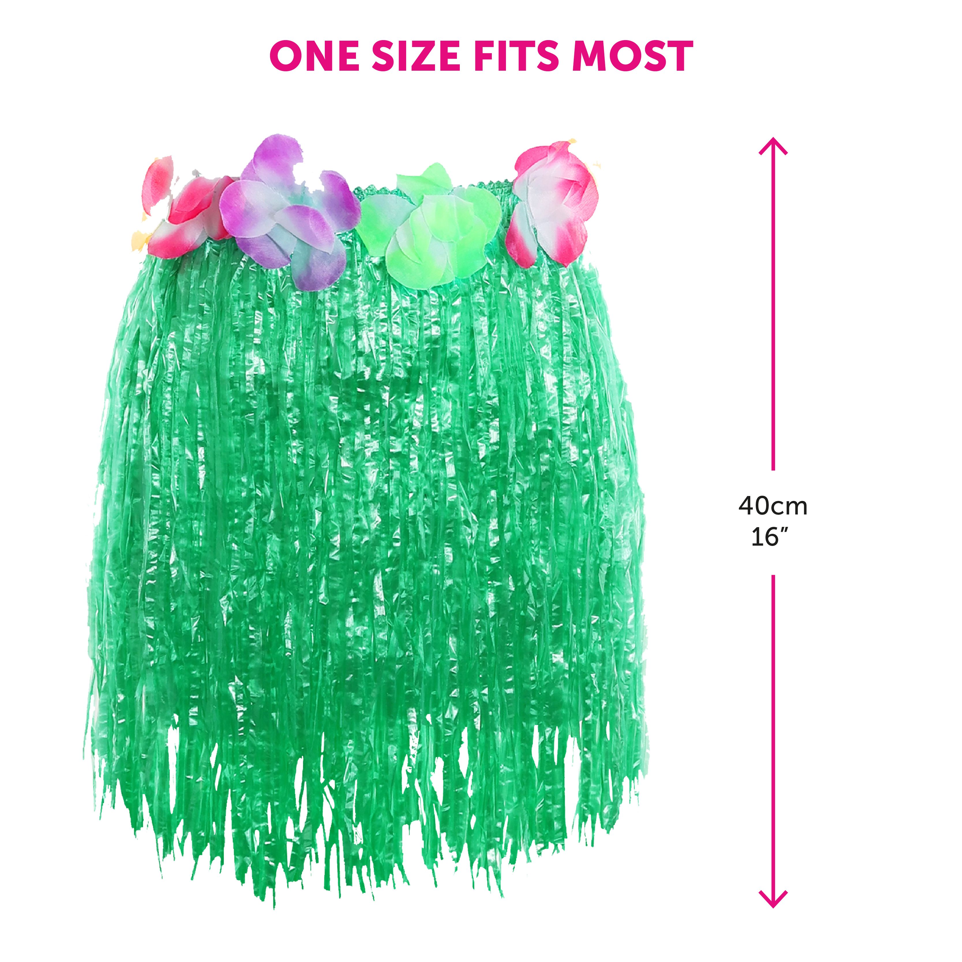 ONE SIZE FITS MOST: The Green Hula Skirt is available in one size, with the Waist measuring 26/38" (66/98cm) and a Length of 16" (40cm), it is comfortable for most to wear!
