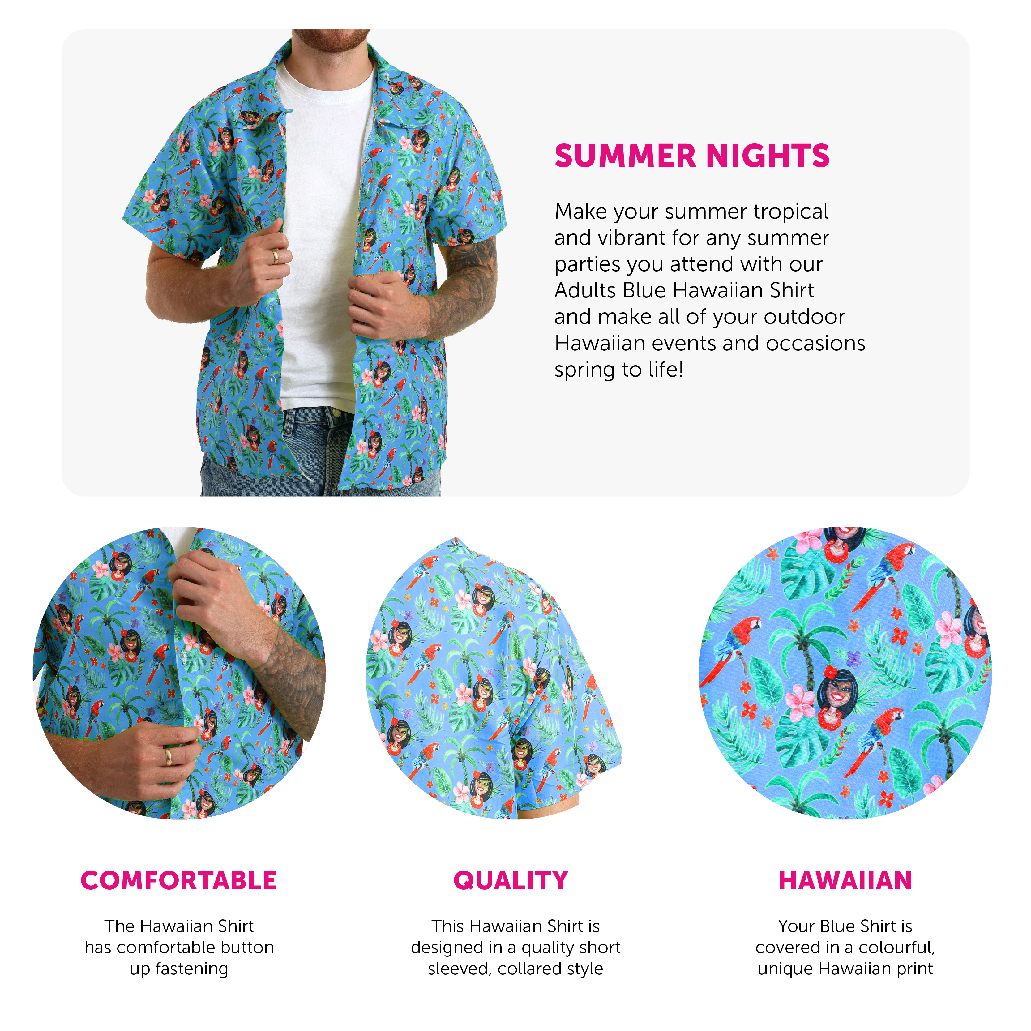 ADULTS BLUE HAWAIIAN SHIRT: Make your summer tropical and vibrant for any summer parties you attend with our Adults Blue Hawaiian Shirt and make all of your outdoor Hawaiian events and occasions spring to life!