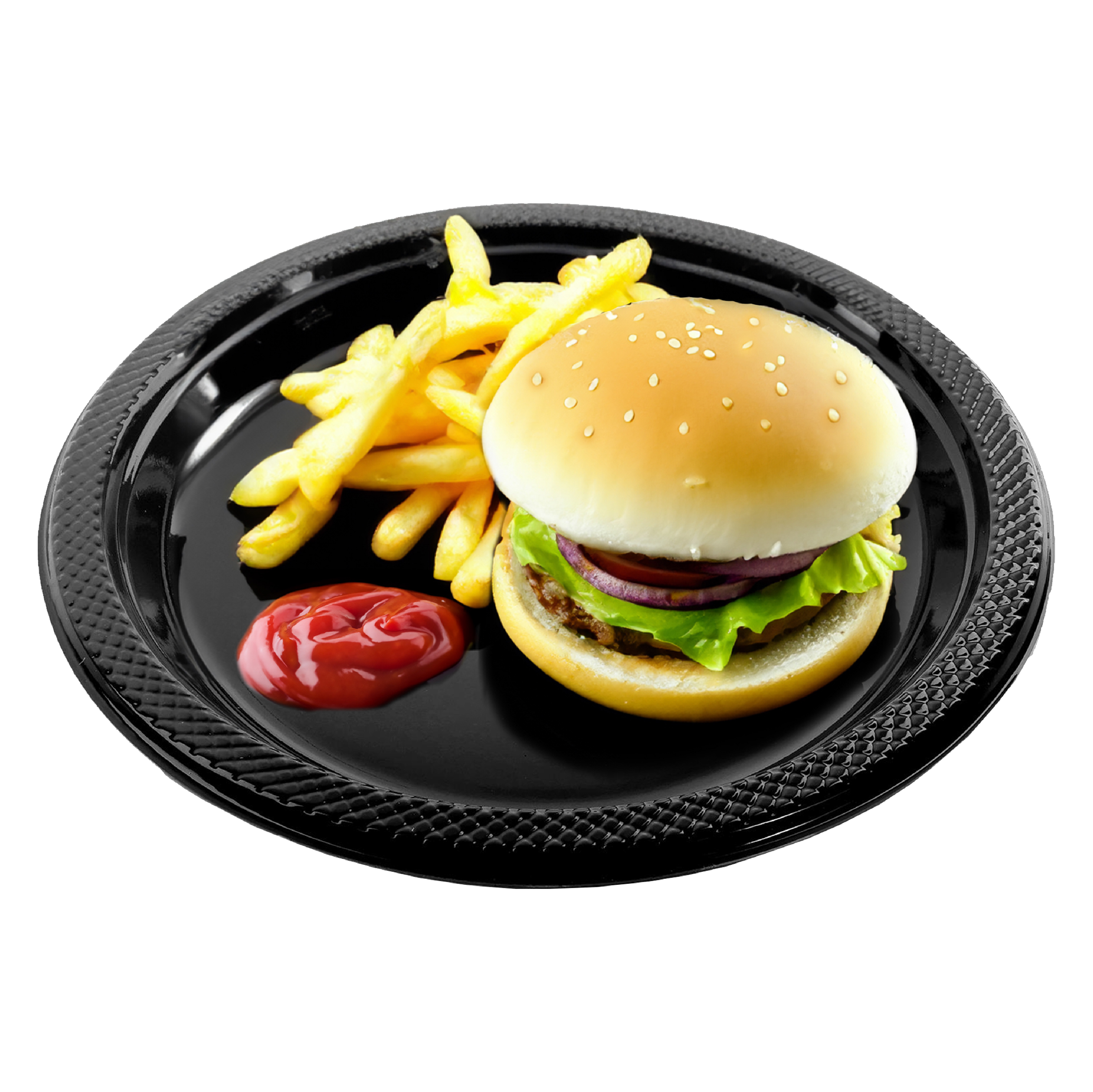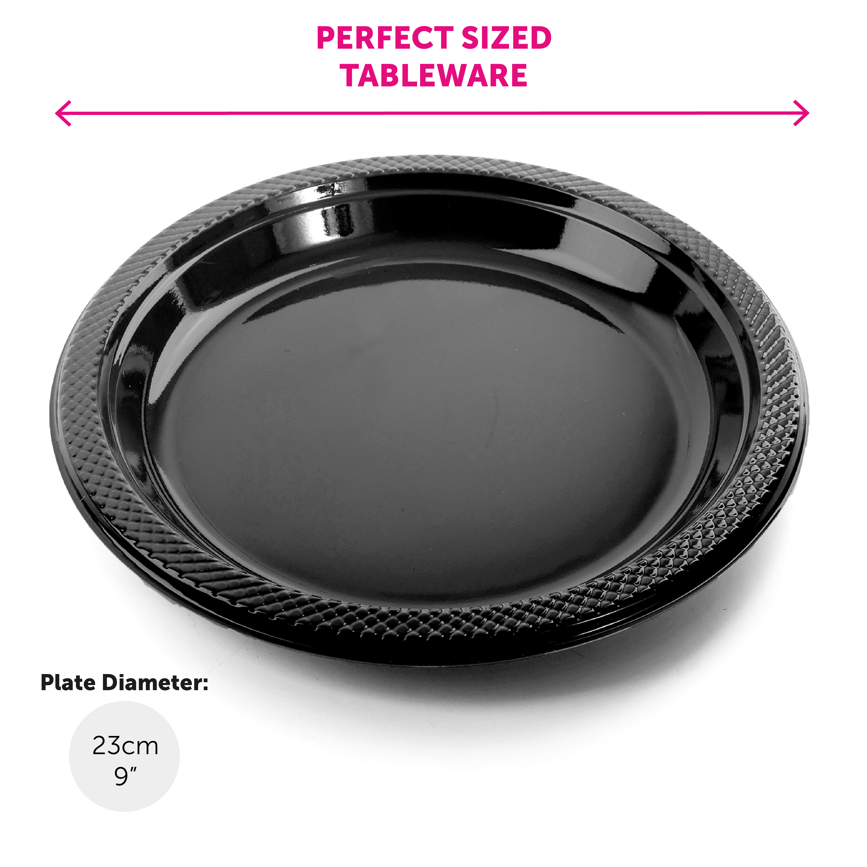 PERFECT FOR ANY PARTY: Whether you're planning a Buffet, BBQ or decorating a Party, then add the finishing touches to your decor with these 9" Black Plastic Plates!