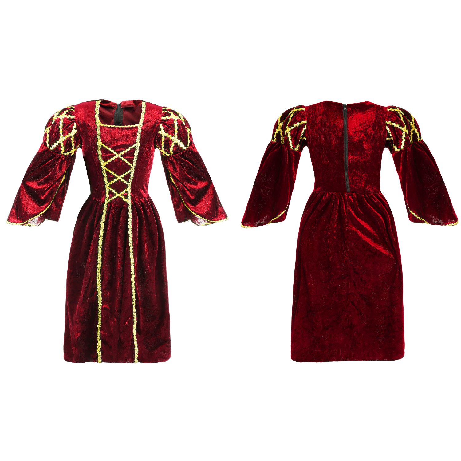 - Decorative gold braiding detail across the bodice