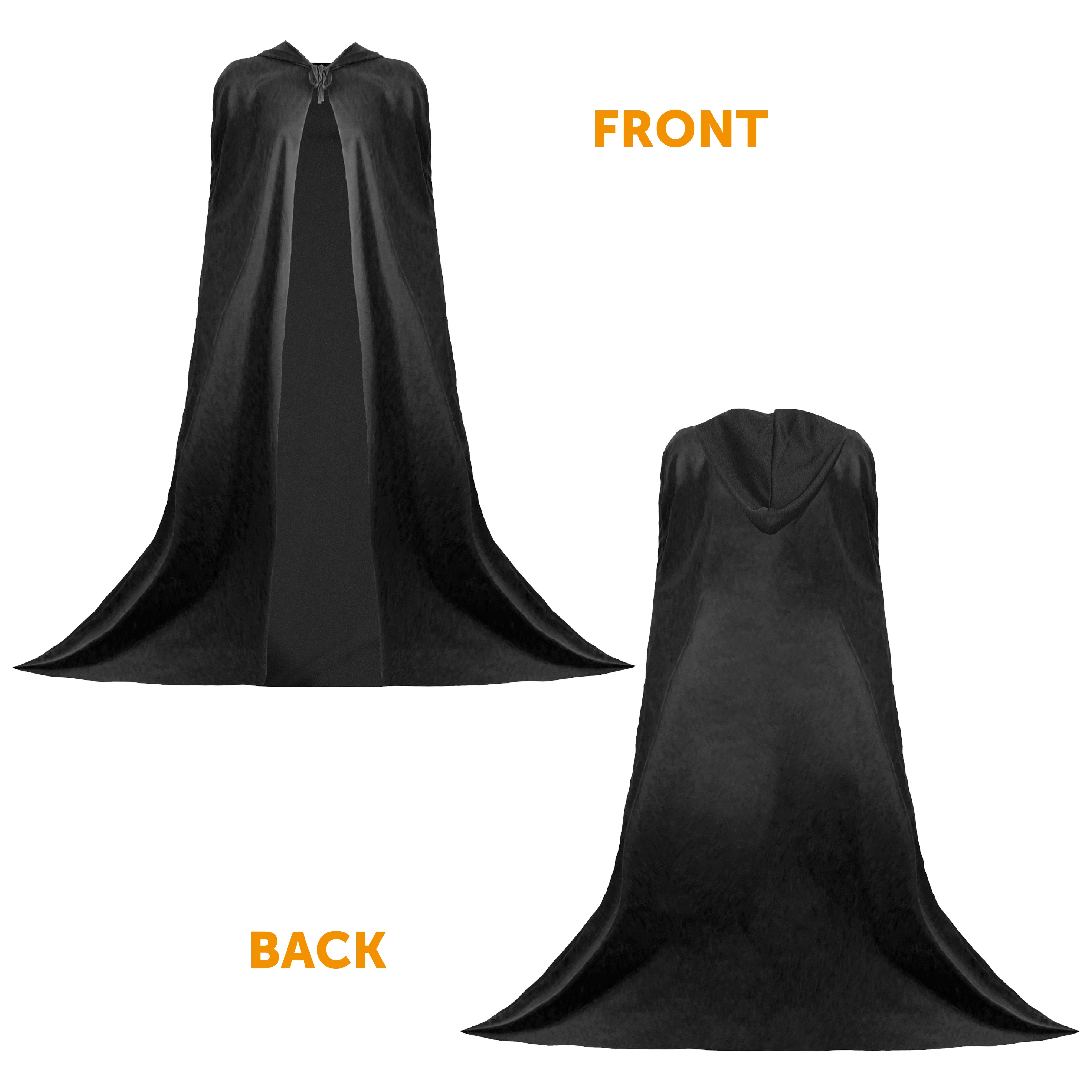 - Floor-length black cape