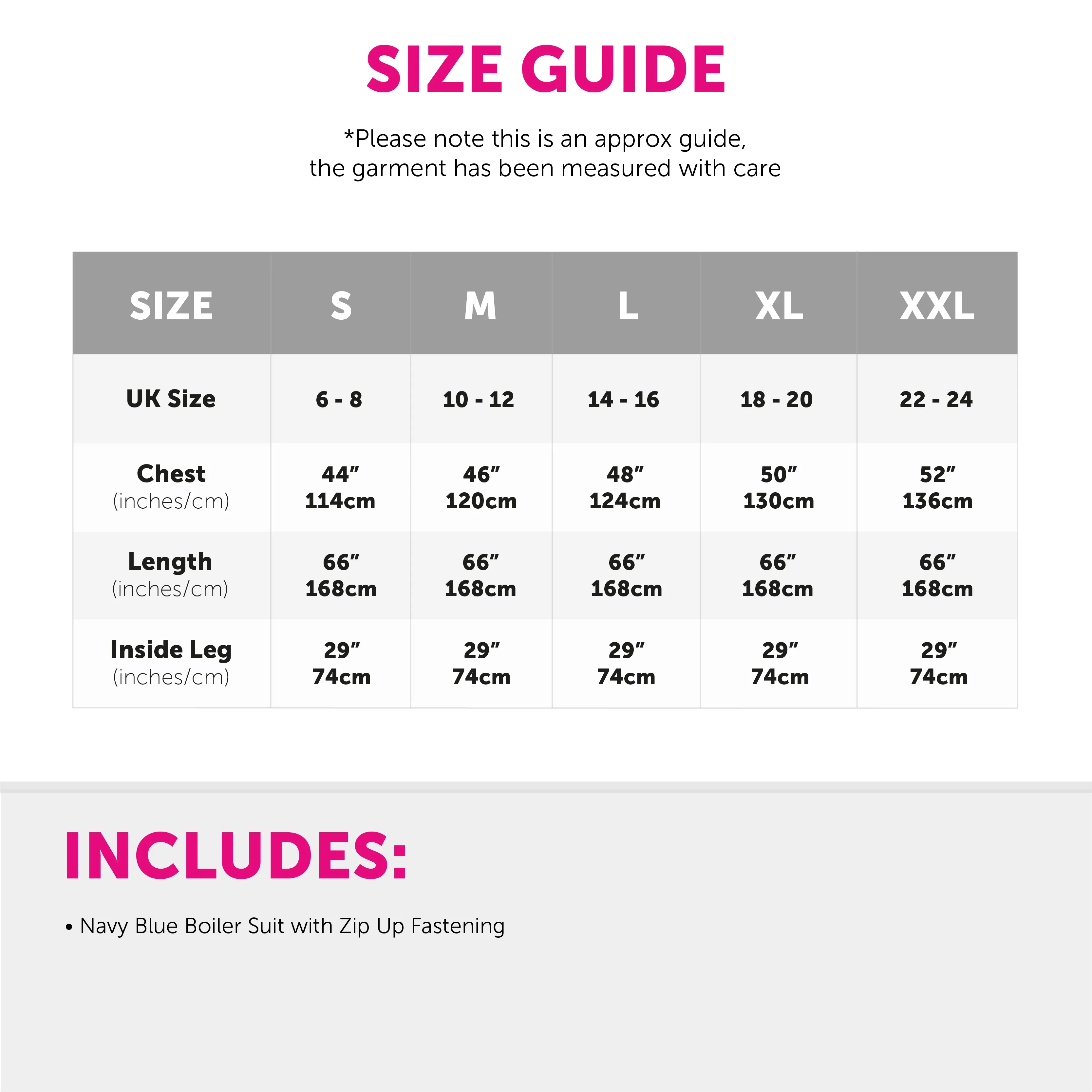 AVAILABLE IN MULTIPLE SIZES: Our Adults Halloween Killer Costume is available in multiple sizes, ranging from Small to XX-Large: Small: UK 6-8: Chest: 44" (114cm), Length: 66" (168cm), Inside Leg: 29" (74cm) | Medium: UK 10-12: Chest: 46" (120cm), Length: 66" (168cm), Inside Leg: 29" (74cm) | Large: UK 14-16: Chest: 48" (124cm), Length: 66" (168cm), Inside Leg: 29" (74cm) | X-Large: UK 18-20: Chest: 50" (130cm), Length - 66" (168cm), Inside Leg: 29" (74cm) | XX-Large: UK 22-24: Chest: 52" (136cm), Length: 66" (168cm), Inside Leg: 29" (74cm)
