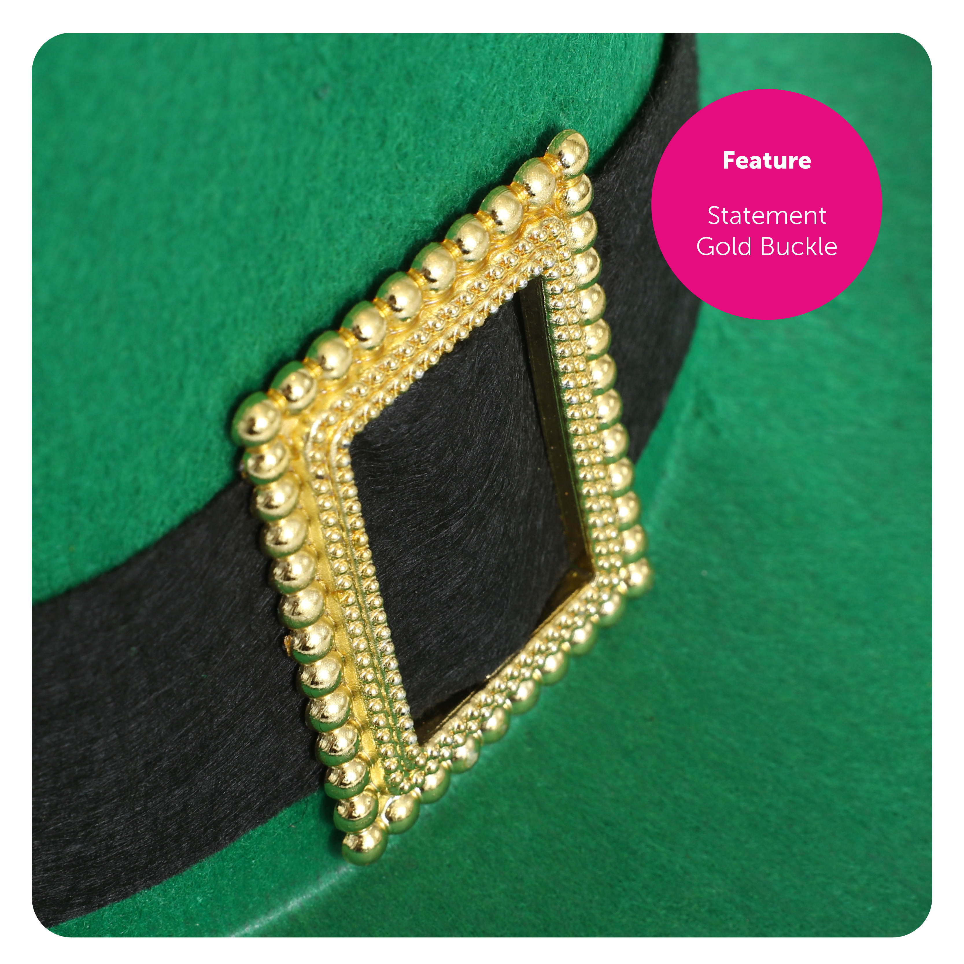 ONE SIZE FITS MOST: This Irish Buckle Top Hat is only available in one size, with a head circumference of 58cm (23"), this should fit any Adult with ease, and is the perfect accessory to complete any costume!