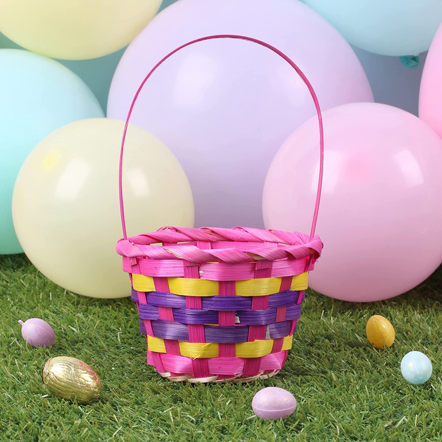 EGG HUNT SET INCLUDES: Your Easter Egg Hunt Set includes 2x Pair of Pink Rabbit Ears Headbands, 2x Pair of Yellow Rabbits Ears Headbands, 2x Small Woven Pink Egg Baskets, 2x Small Woven Yellow Egg Baskets, 36x Assorted Easter Egg Capsules!