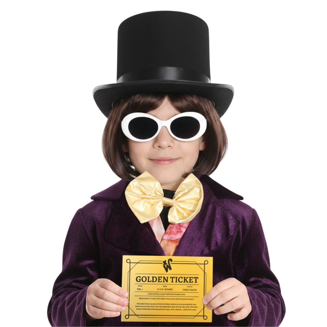 Child's Chocolate Factory Boss Accessory Set | 4 Pcs | Hat, Wig, Glasses & Golden Ticket