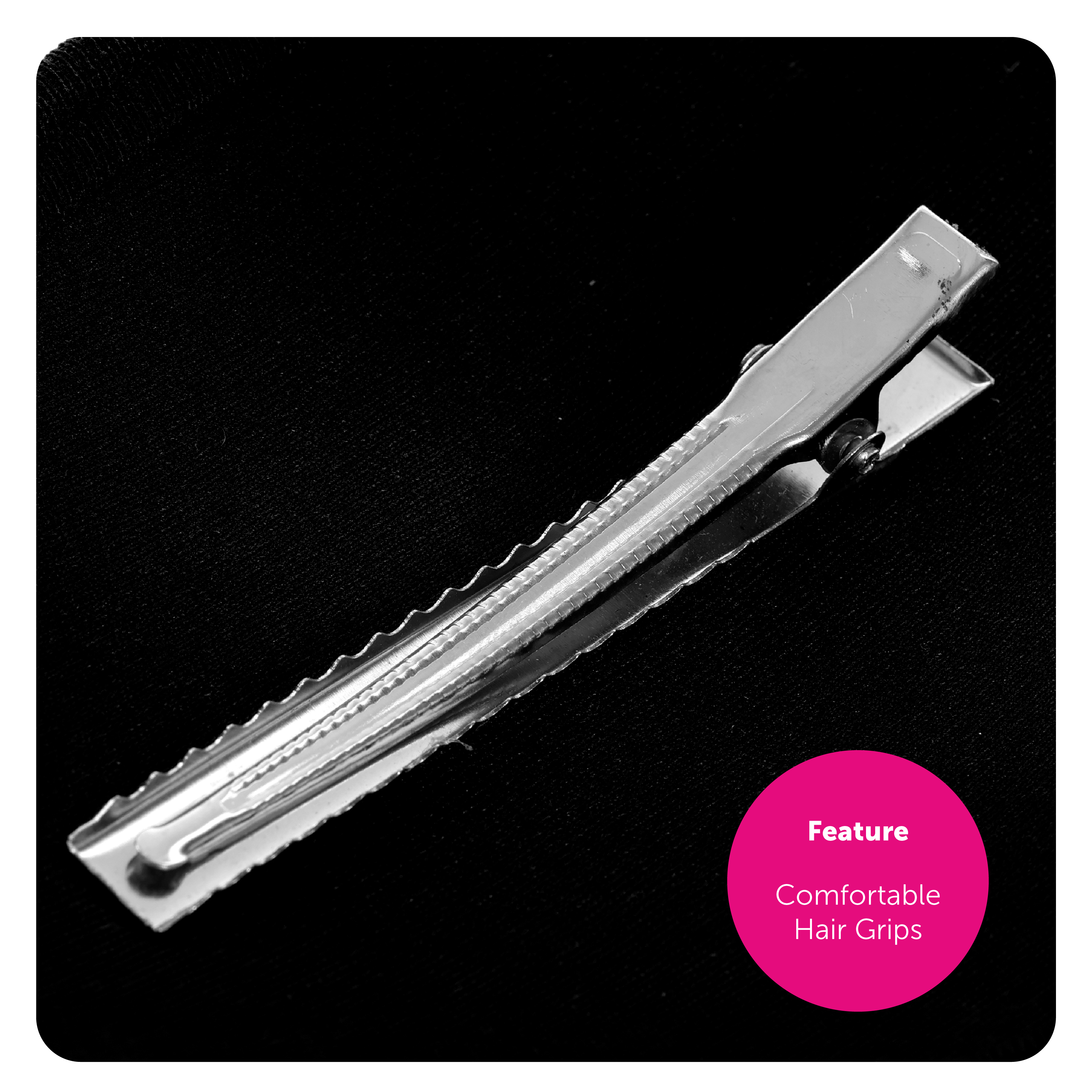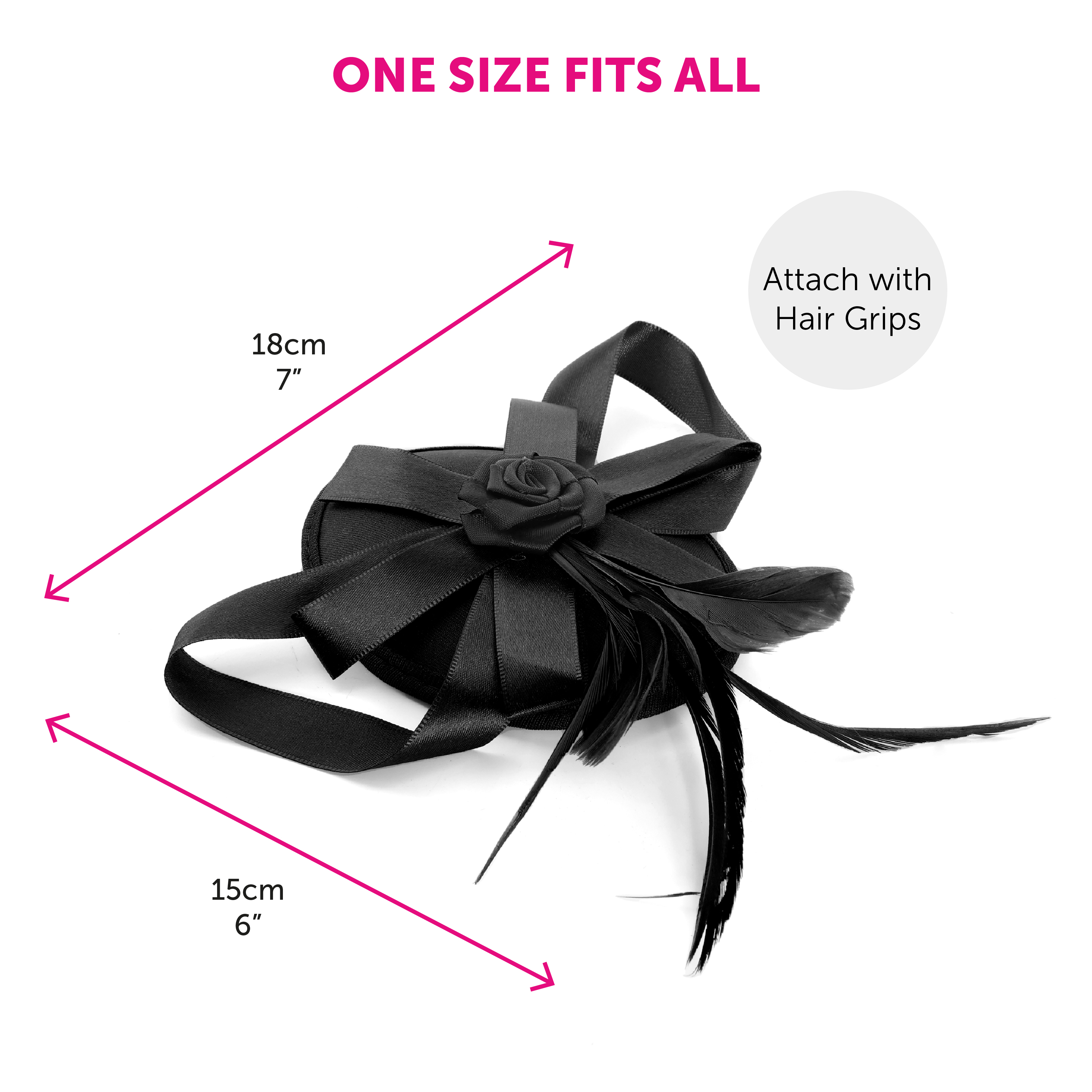 ONE SIZE FITS ALL: The Mini Black Fascinator Headpiece has hair grips underneath, allowing anyone to wear comfortably! The Mini Headpiece measures a length of 15cm (6") and a width of 18cm (7")