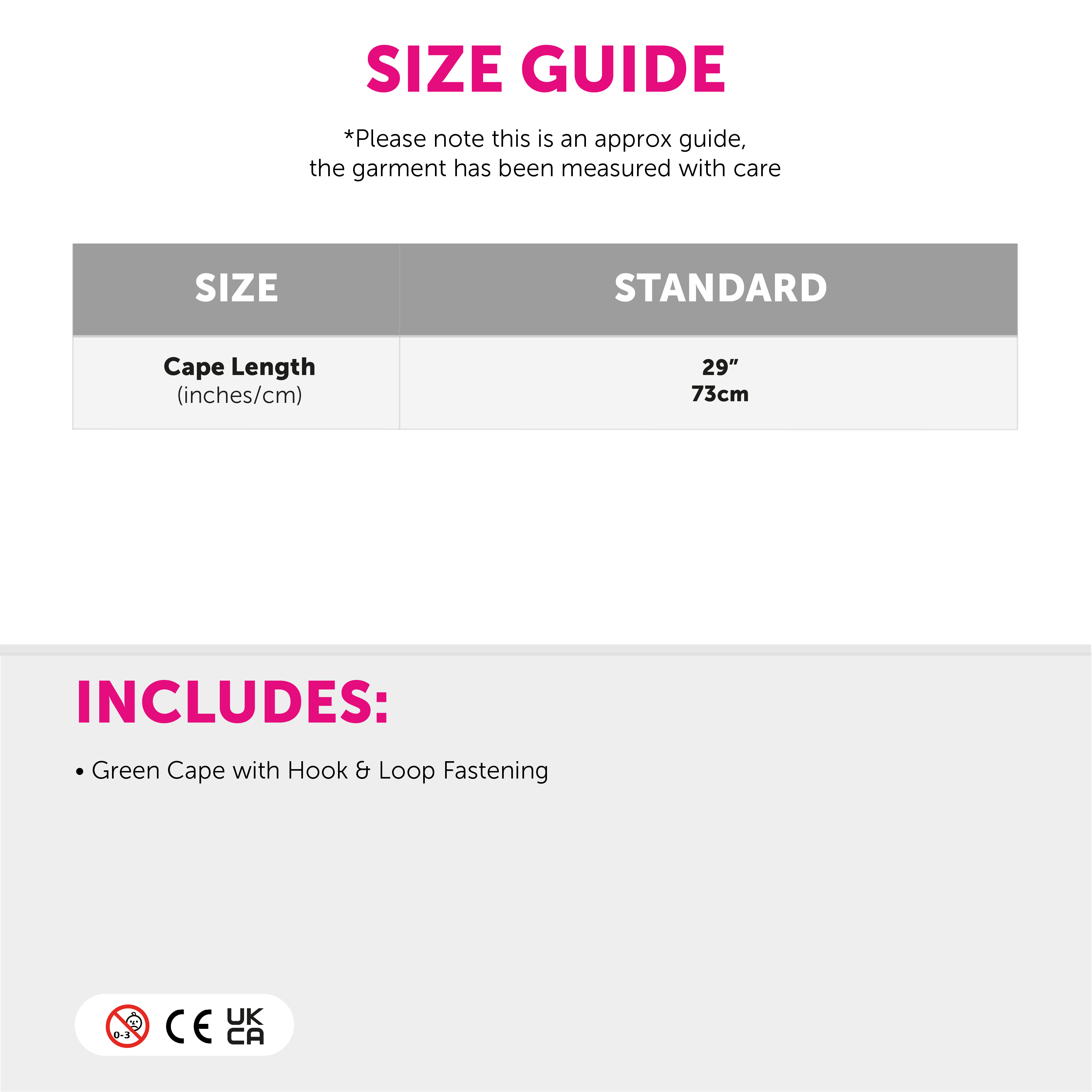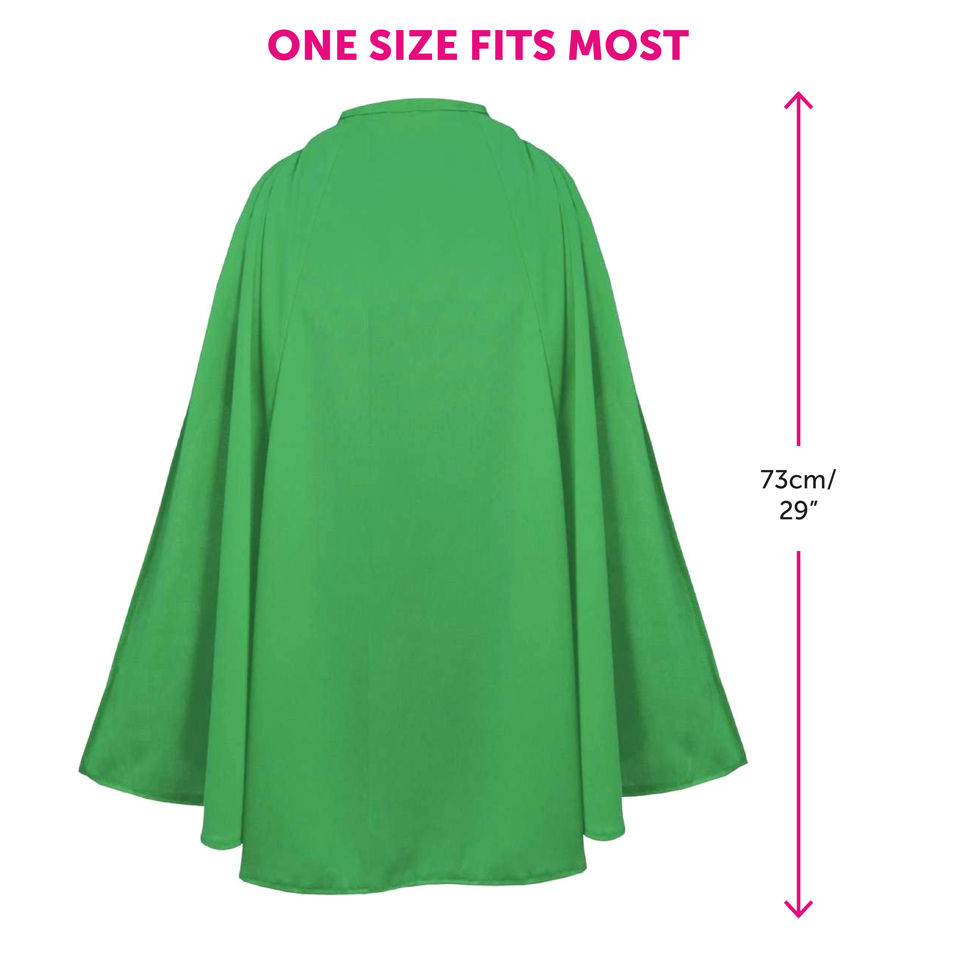 ONE SIZE FITS MOST: Your Child's Green Cape is only available in one size, measuring 29" (73cm) in length, you’ll feel comfortable and have no issue saving the day!