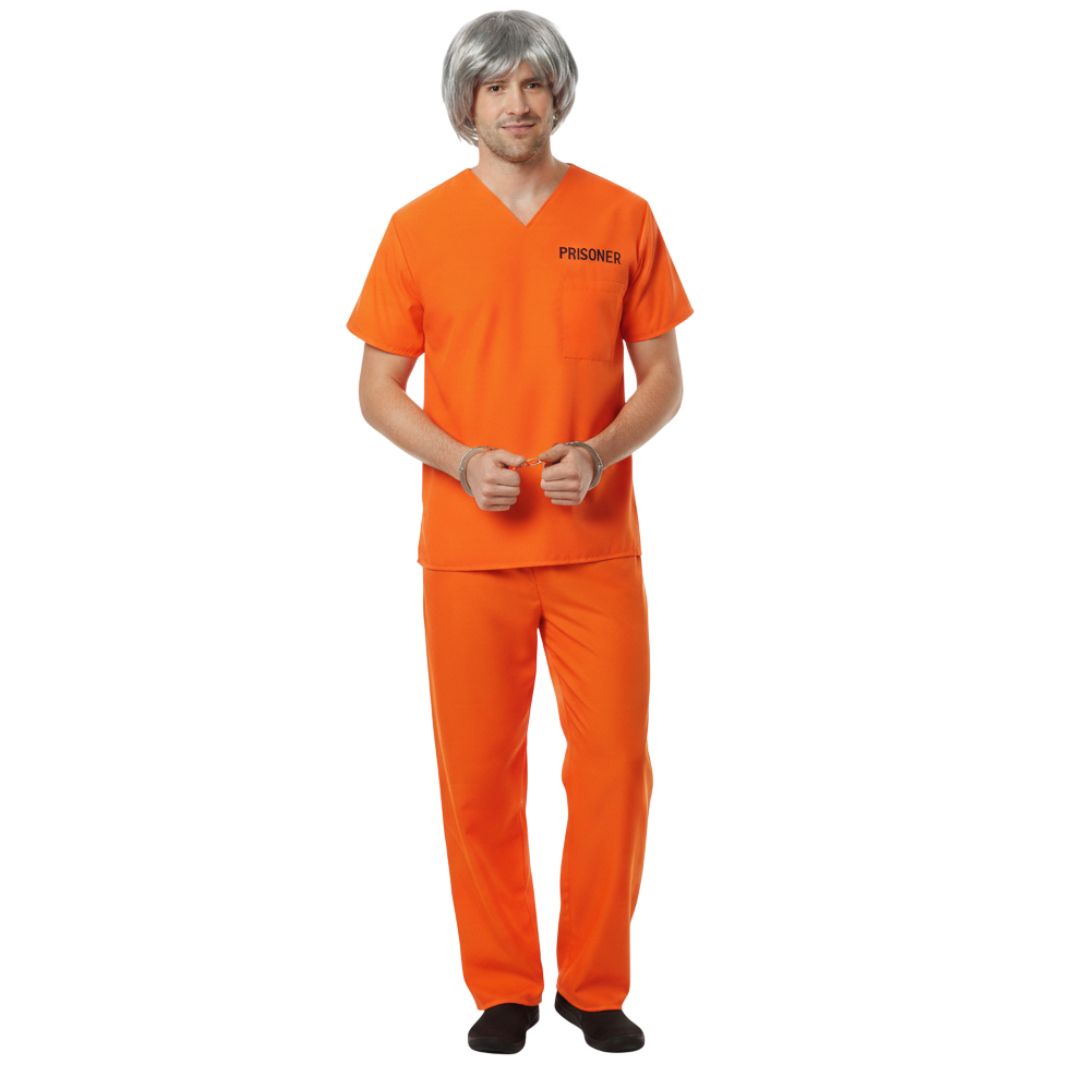 - Orange prisoner top with “PRISONER” printed on the front and back